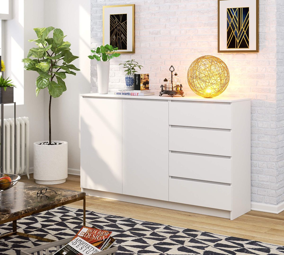 A K 013 modell egy univerzális fehér színű bútor. Az időtlen fehér szín bármilyen belső tér stílusához illik, mivel kiválóan kombinálható mind a visszafogott, mind az energikusabb színekkel. A komód kivételes dizájnnal rendelkezik, amely a legmagasabb vizuális értékeket képviseli.
