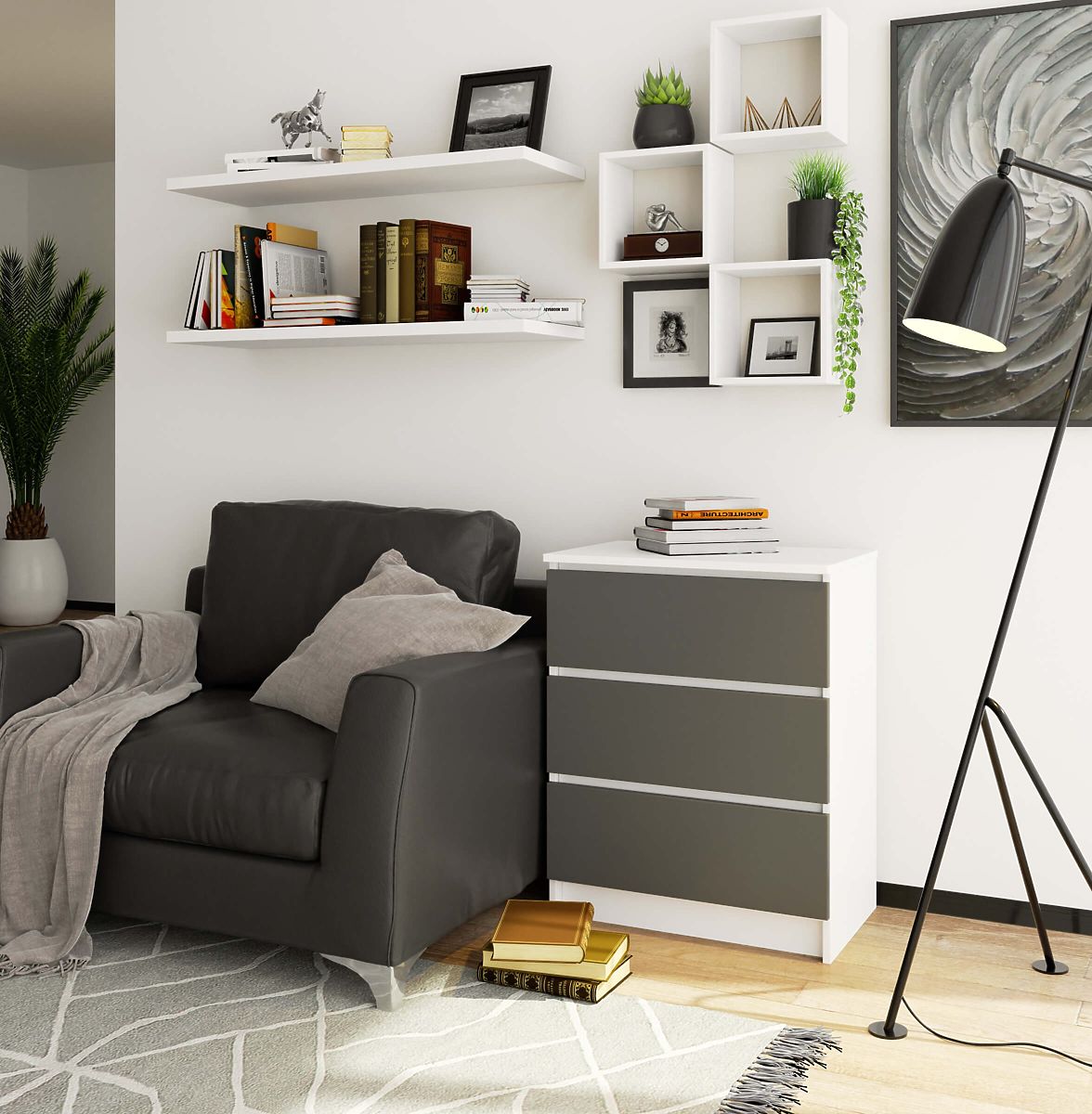 KOMÓD K60 3 FIÓK Laminált, 16 mm vastag, kopásálló lapból készült.