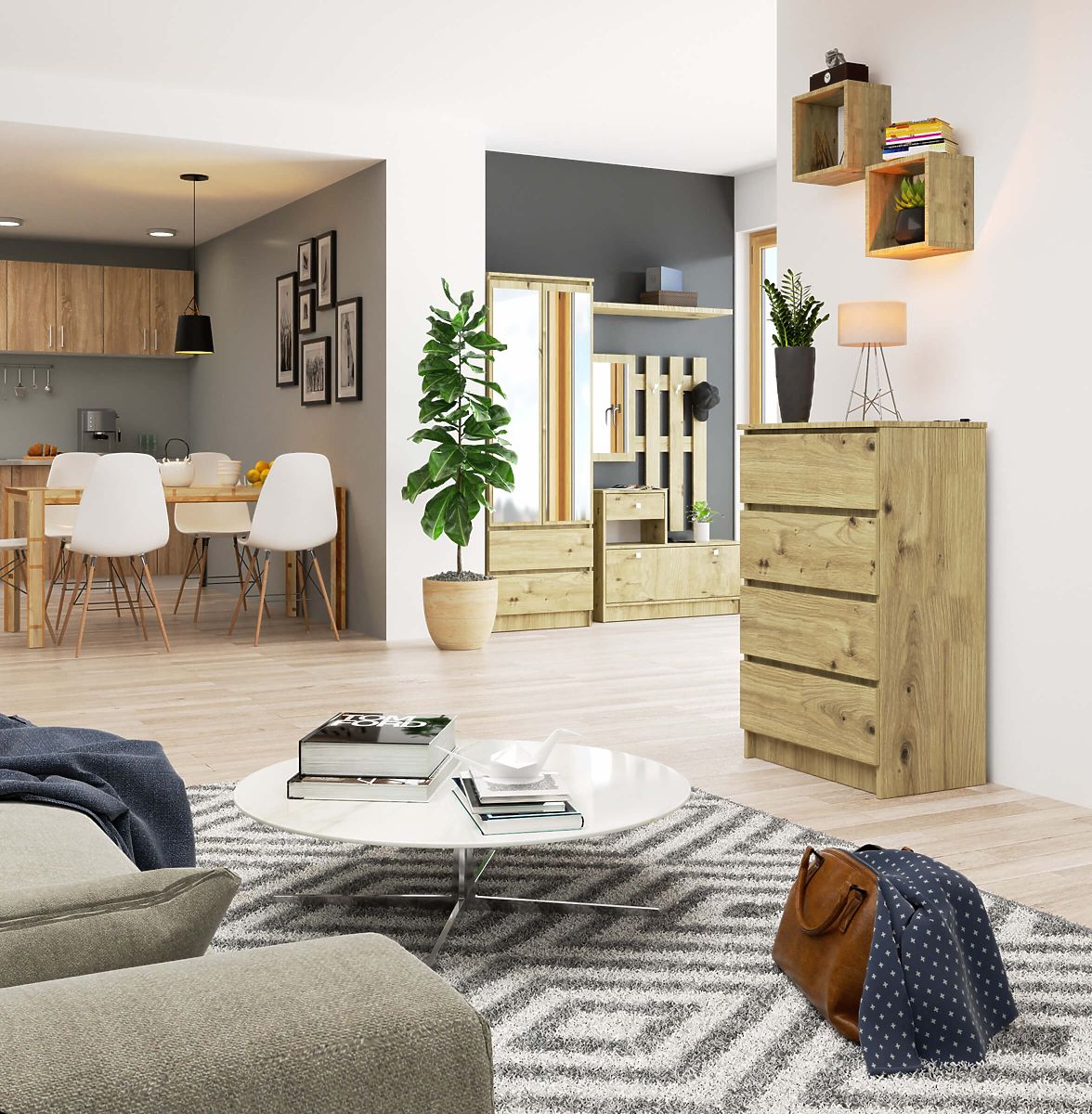 Kopásálló laminált komód 4 fiókkal, Artisan Tölgy színben. .. többet