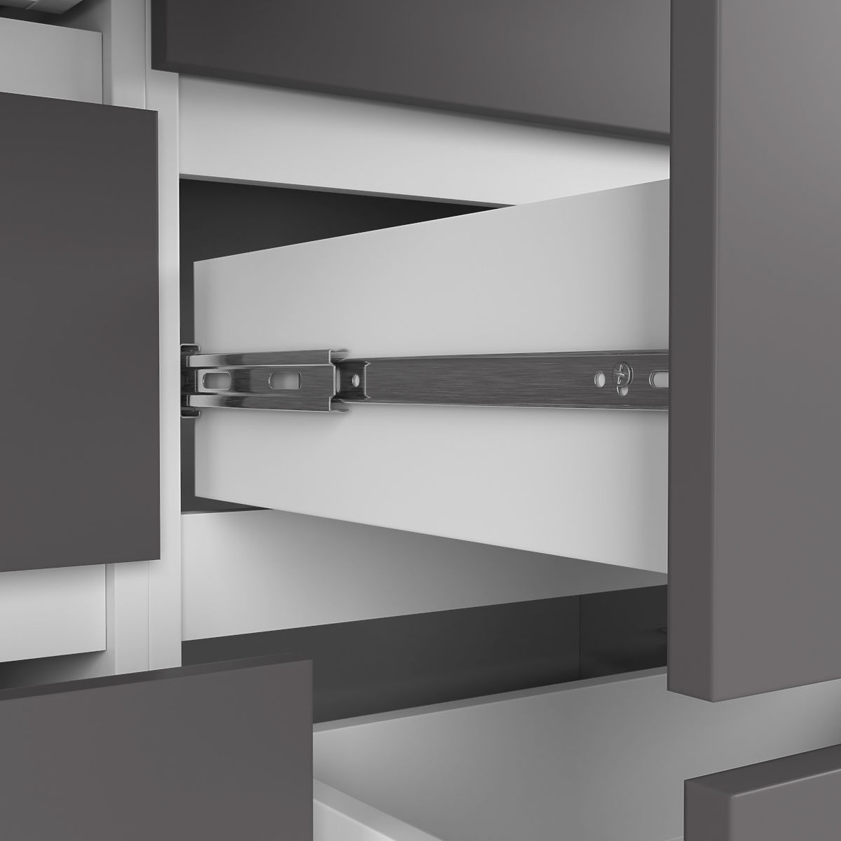 - A fiókok fém golyóscsapágyas síneken mozognak