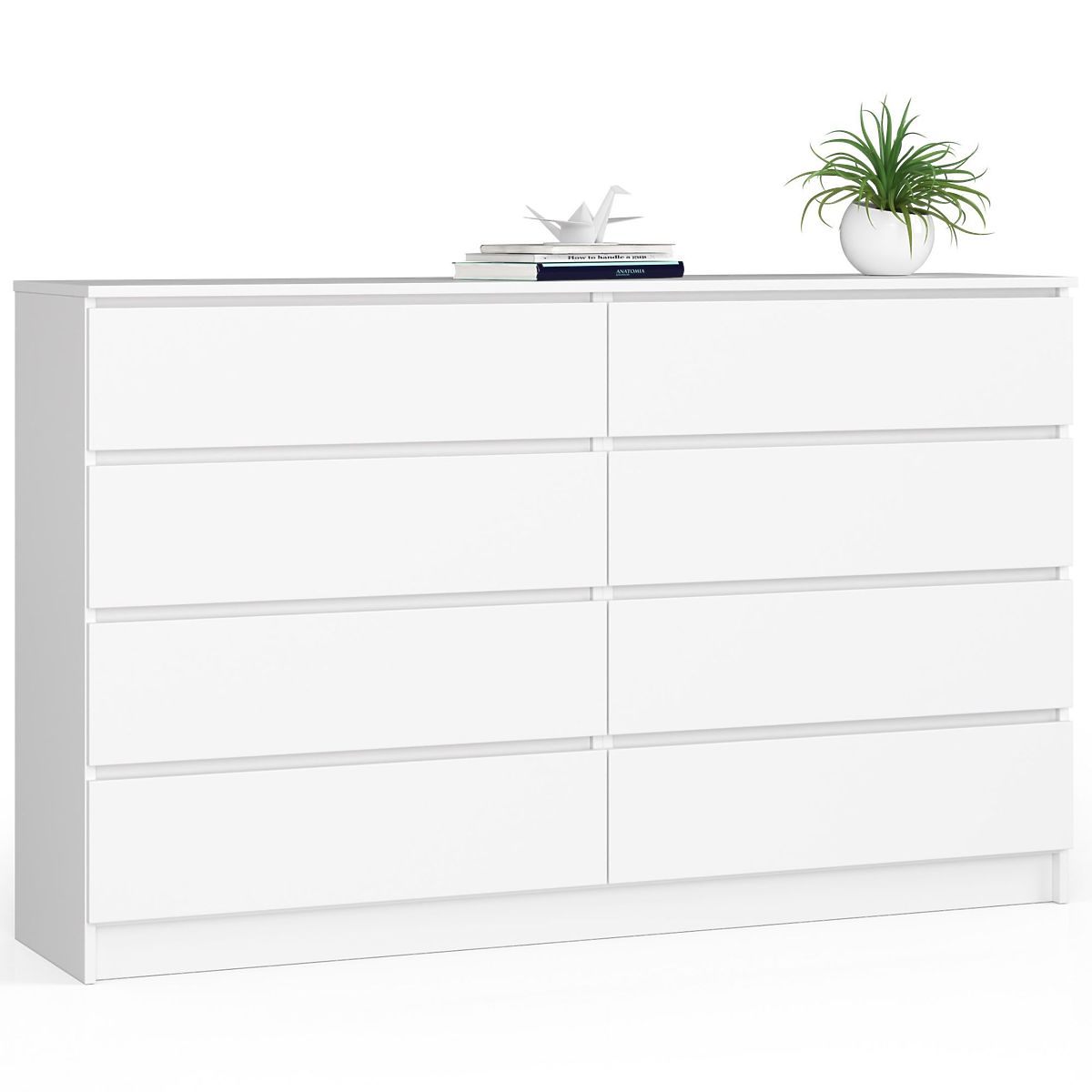 Fehér komód 160 cm, 8 fiókkal, modern és praktikus. .. többet
