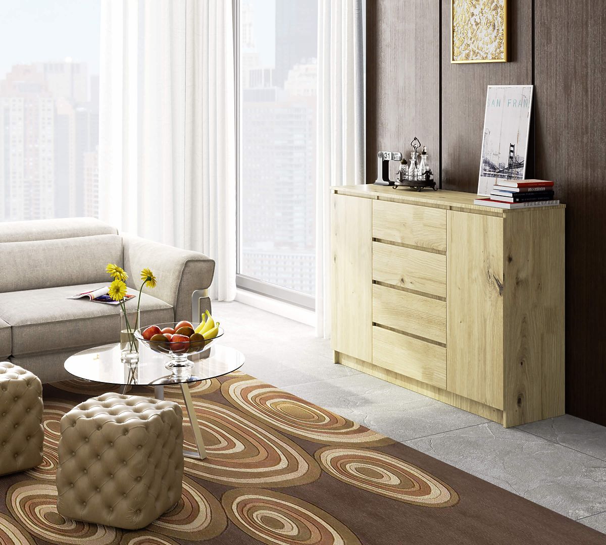 Kétajtós, négyfiókos komód Artisan Tölgy színben. .. többet