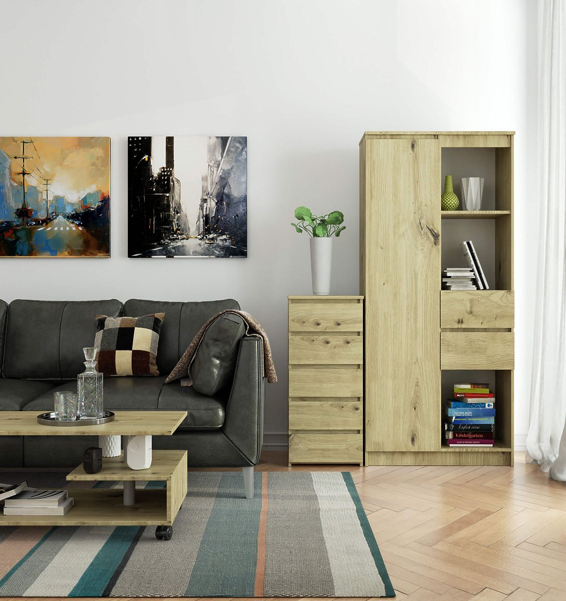 - elegáns megjelenés - a komód egyszerű formájú, stílusos artisan tölgy színnel rendelkezik,