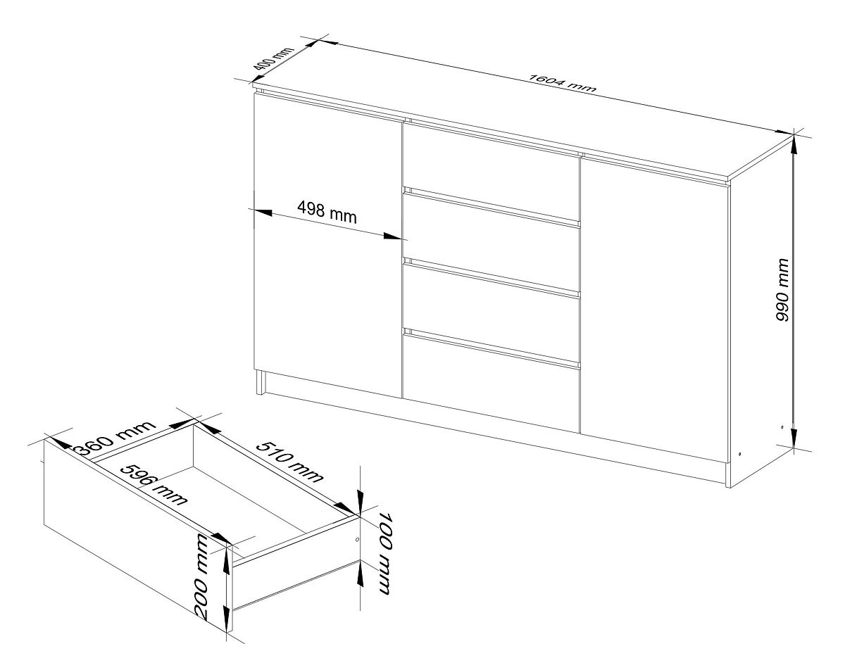 KOMÓD K160 cm 2 AJTÓ 4 FIÓK