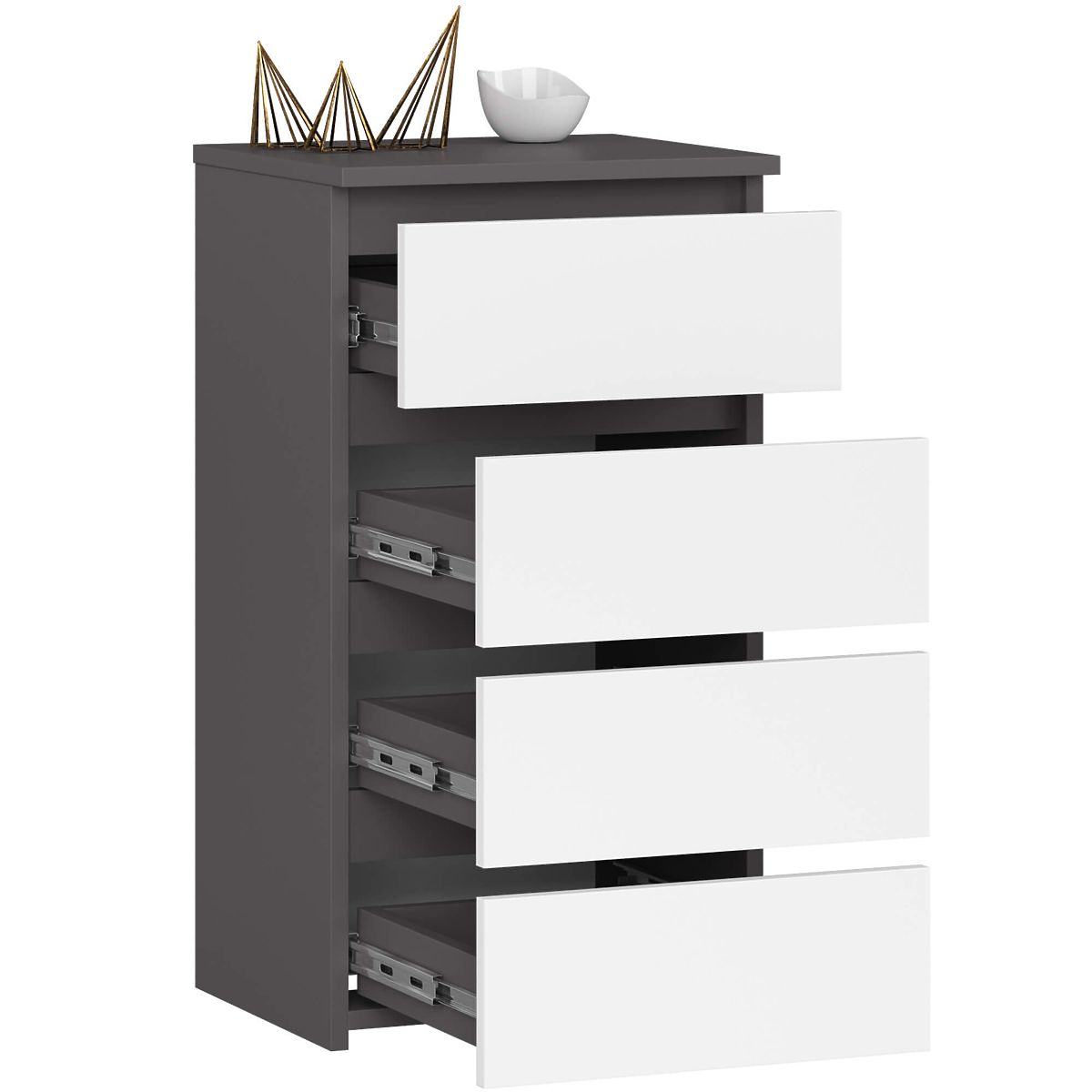 Grafit szürke komód fehér előlapokkal, 4 fiókkal. .. többet