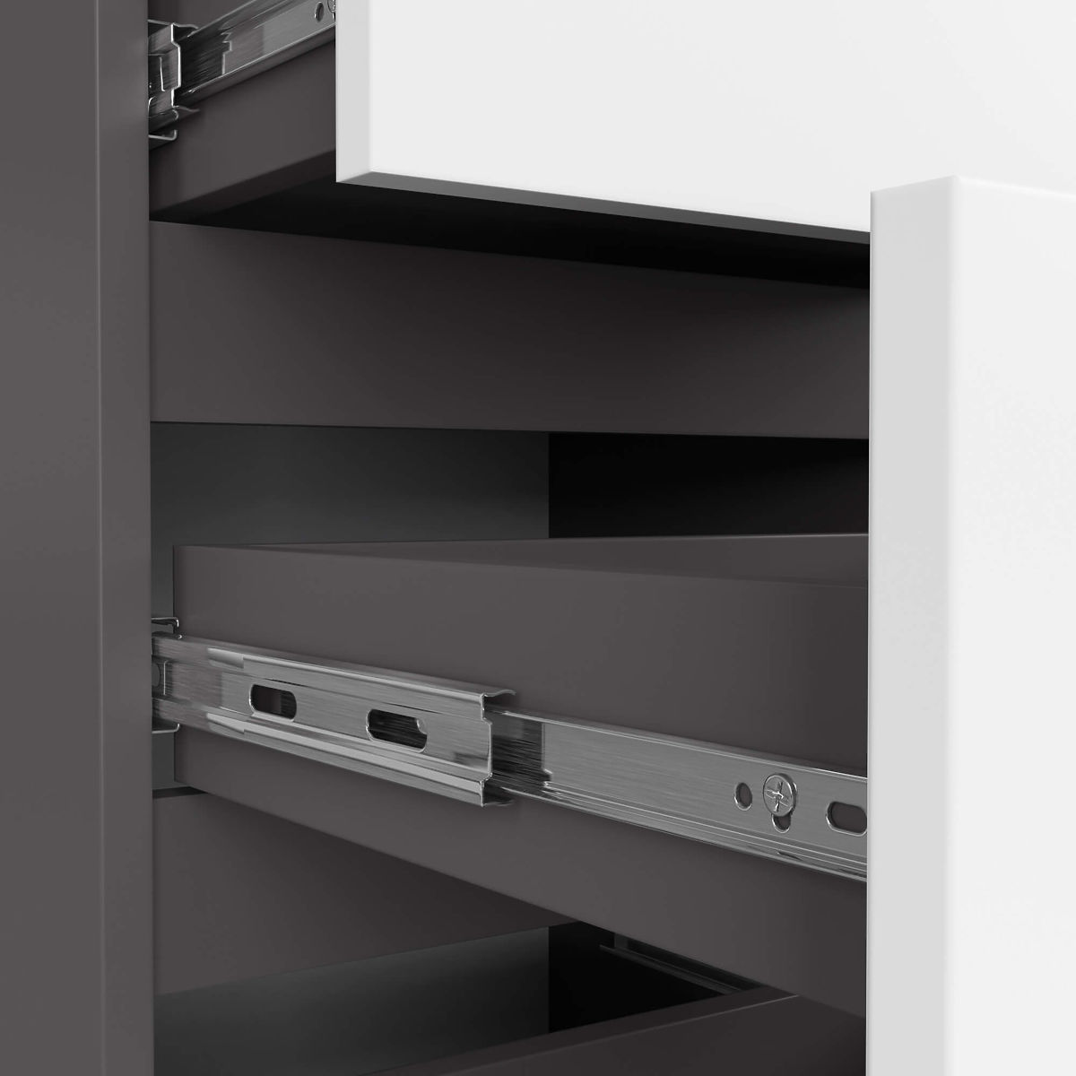 - használati kényelem - a fiókok könnyen mozognak a fém golyós csúszkákon,
