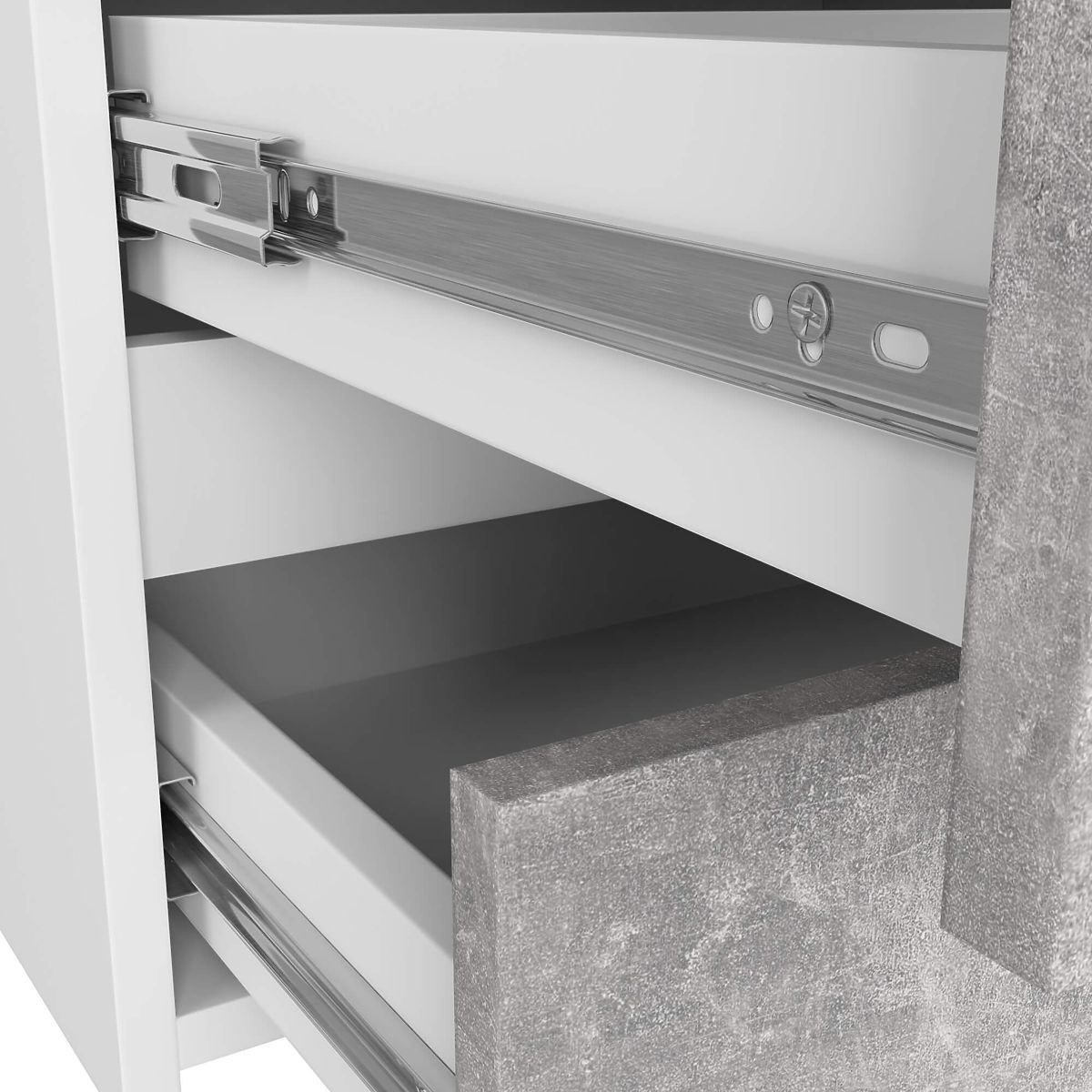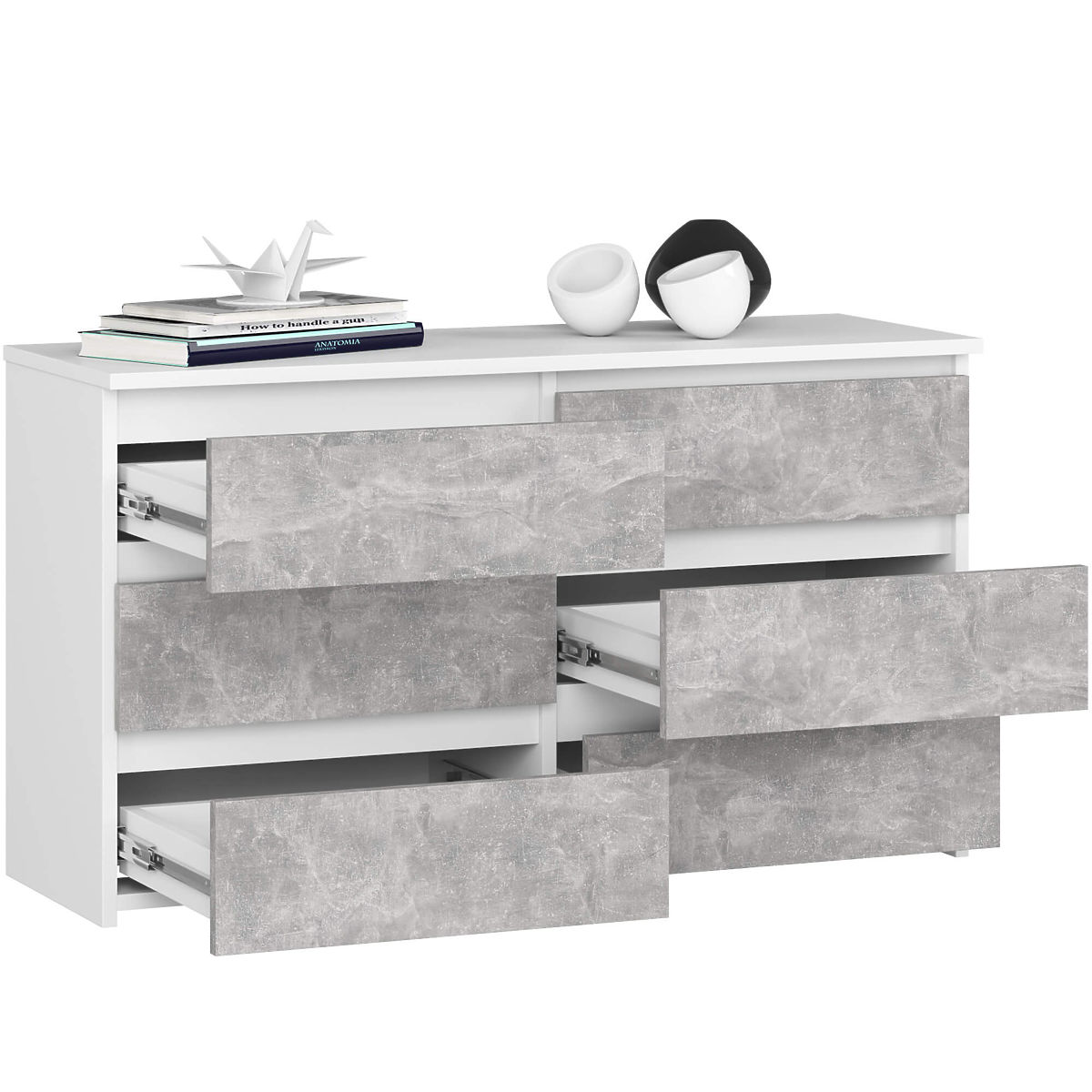 Fehér komód beton előlapokkal és hat tágas fiókkal. .. többet