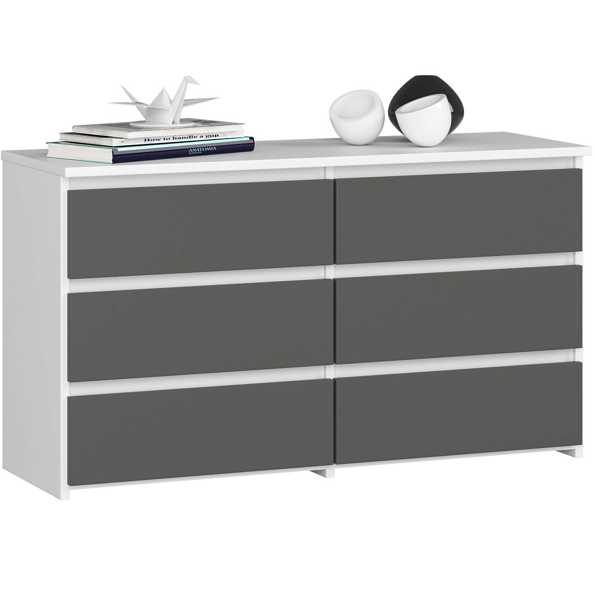 Fehér komód grafitszürke előlapokkal, 6 tágas fiókkal. .. többet