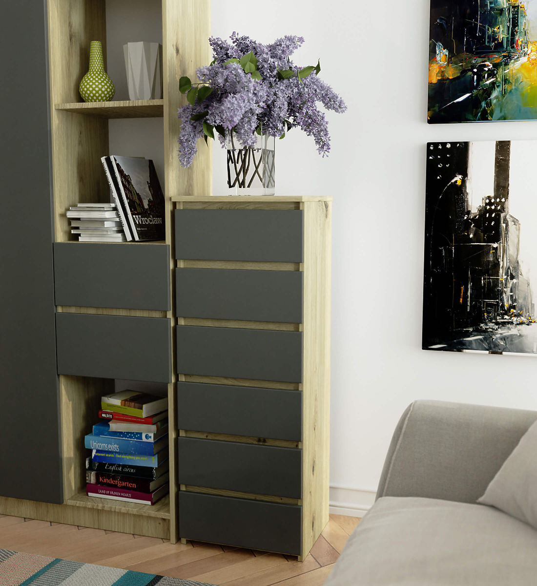 6 fiókos komód artisan tölgy és grafit szürke színben. .. többet
