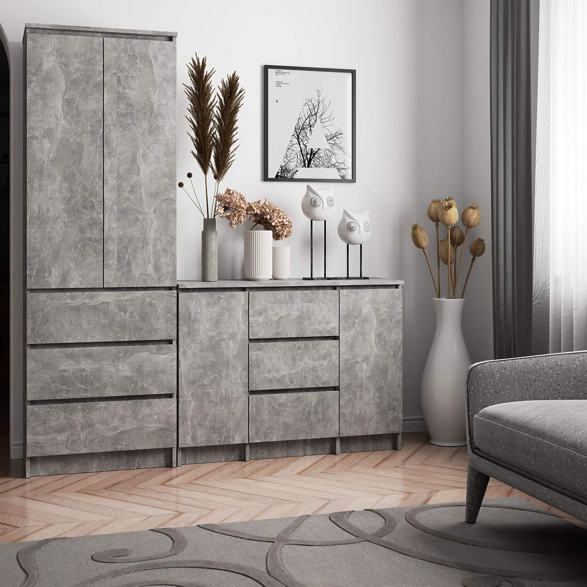 Kopásálló laminált lapból készült beton színű komód. .. többet