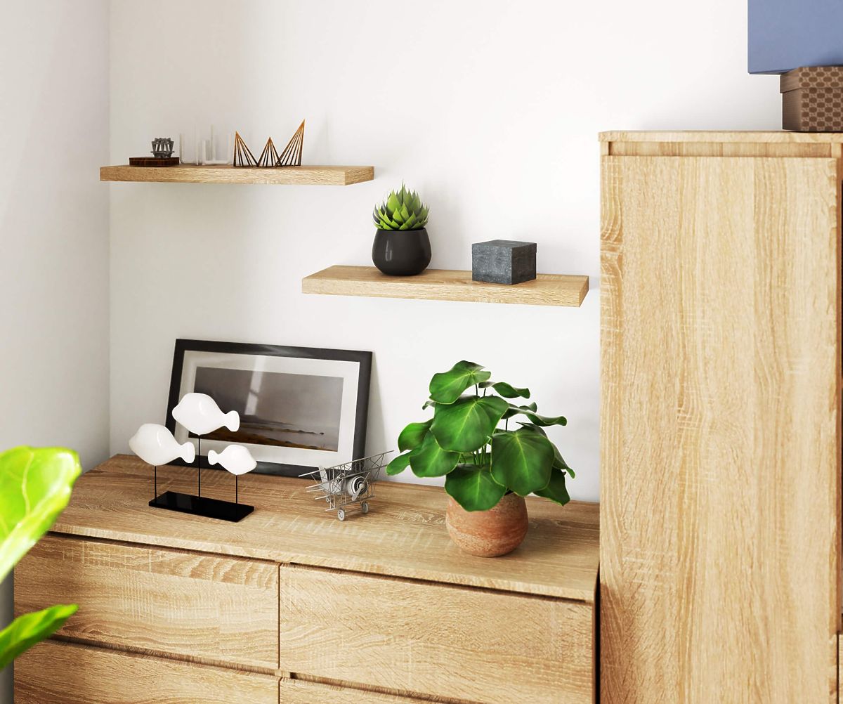 60 cm széles Sonoma Tölgy fali polc laminált lapból. .. többet