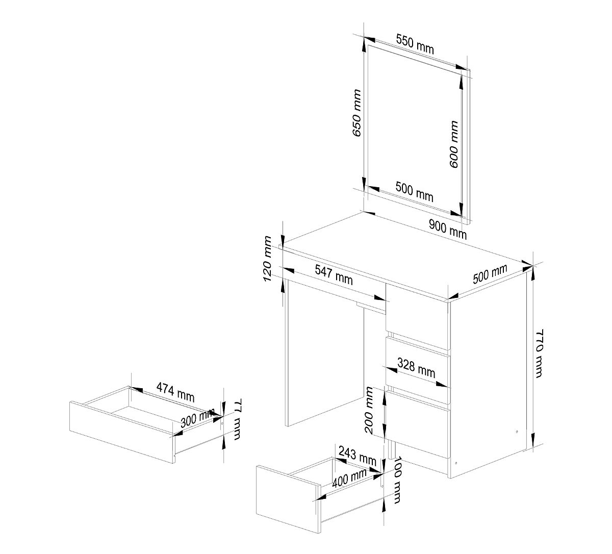 A fürdőszobaszekrény az A-6 asztal és egy további fiók, valamint a tükörpanel kombinációja.
