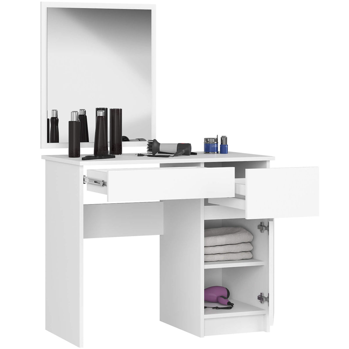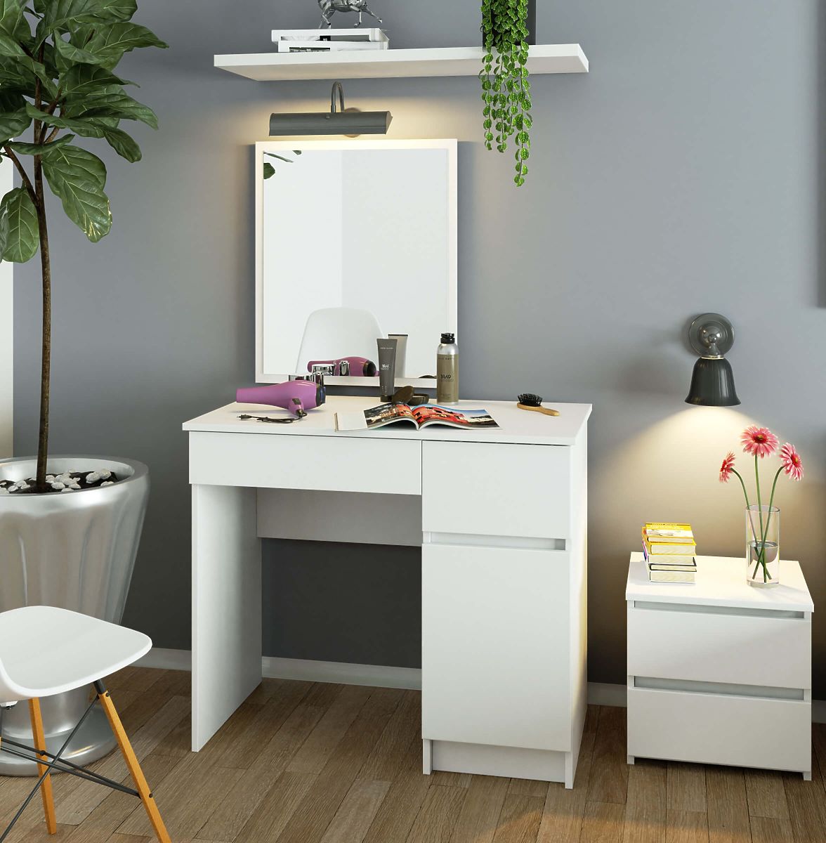 Kompakt változat azoknak a nőknek, akik minden reggel gyors sminkelési lehetőséget szeretnének. Hálószobába és nem csak oda tervezett megoldás. A fésülködő asztal méretei kiválóan alkalmasak kozmetikai szalonokba is.