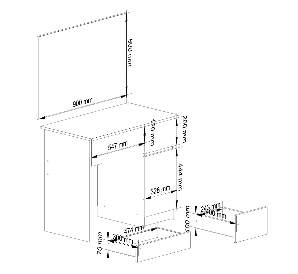 Lukahome.hu » Asztalok és dohányzóasztalok / Öltözőasztalok / TOALETTPULT TÜKÖRREL CLP P-2/SL 900x600 JOBB PK FEHÉR
