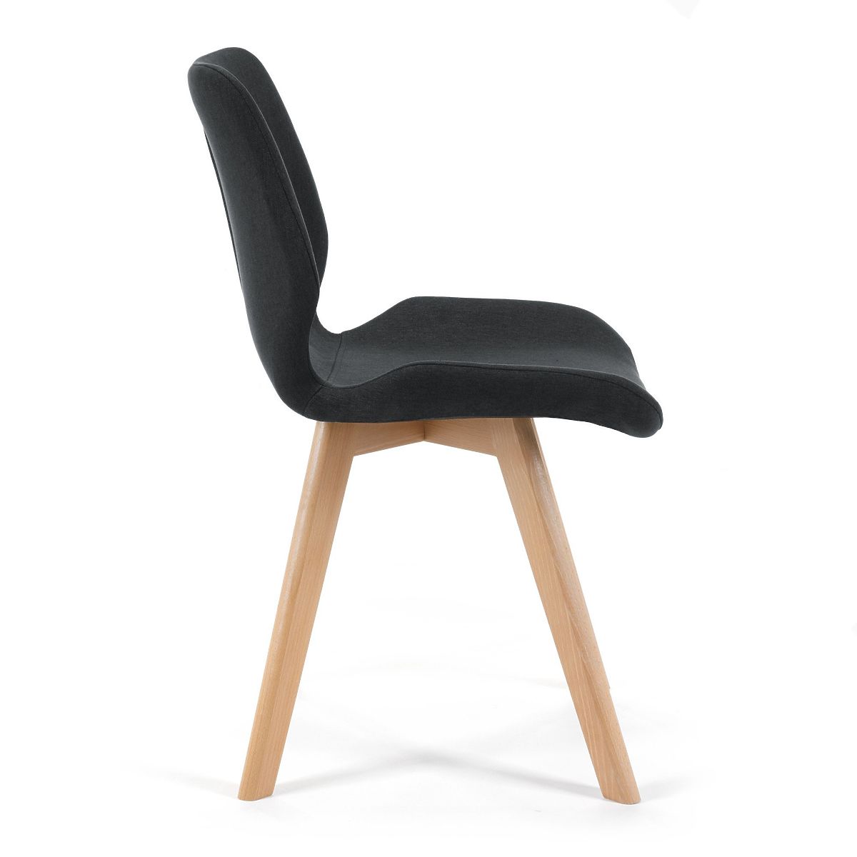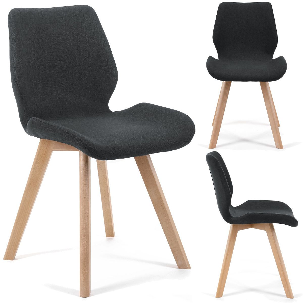Skandináv stílusú szék fekete szövet kárpitozással és fa lábakkal. .. többet