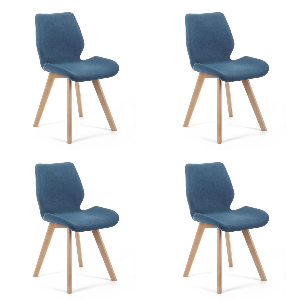Elegáns kék szék. A fa lábak modernséget és stílust kölcsönöznek ennek a terméknek. A szék a szövet kárpitozásnak köszönhetően nagyon szép és kényelmes is. Alkalmas nappaliba, irodába, hálószobába, váróterembe vagy recepcióra. A székek készletekben kaphatók - 4 db egy csomagban.