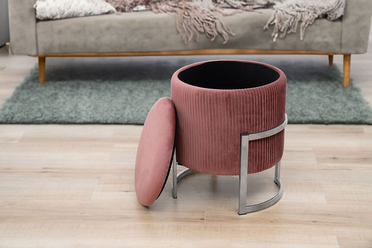 A lábtartó vagy puff kiváló kiegészítő a nappaliba vagy a hálószobába. Segítségével a fáradt lábak pihenhetnek egy hosszú nap után, és ha a puff puha velúrból készült, az csak fokozza a pihenés kellemes érzését. A modern megjelenést a részletek teszik teljessé, puffunkban ezüst színű fém alapot használtunk. A nyitható fedél hozzáférést biztosít a tárolóhelyhez, ahová a mindennapi használatra nem szükséges tárgyak elhelyezhetők.Specifikációk: