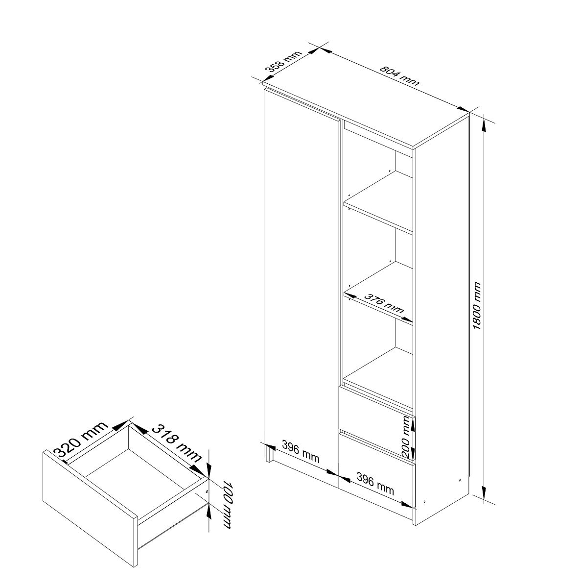 Fehér színű irodai polc ajtókkal és fiókokkal, grafit fényes előlappal.