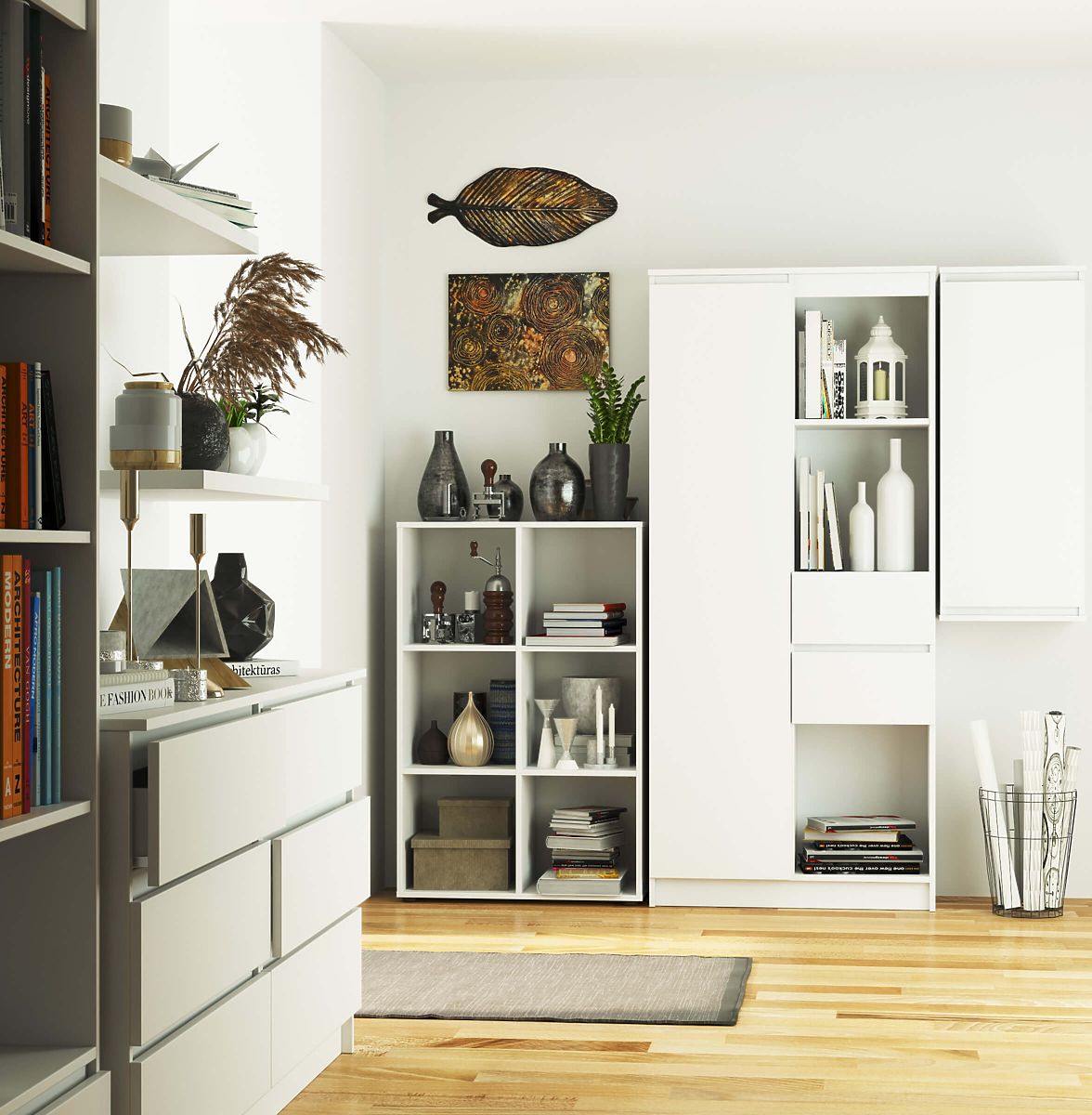 - elegáns megjelenés: a polc egyszerű formájú, stílusos fehér színű,