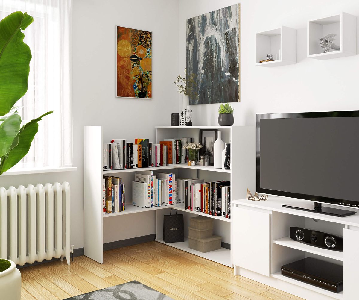 Egyedi állítható mini TWIST polc, amely szétszerelhető vagy sarokpolccá alakítható. Tulajdonságainak köszönhetően ideálisan illeszkedik minden típusú nappaliba, irodába vagy gyerekszobába.