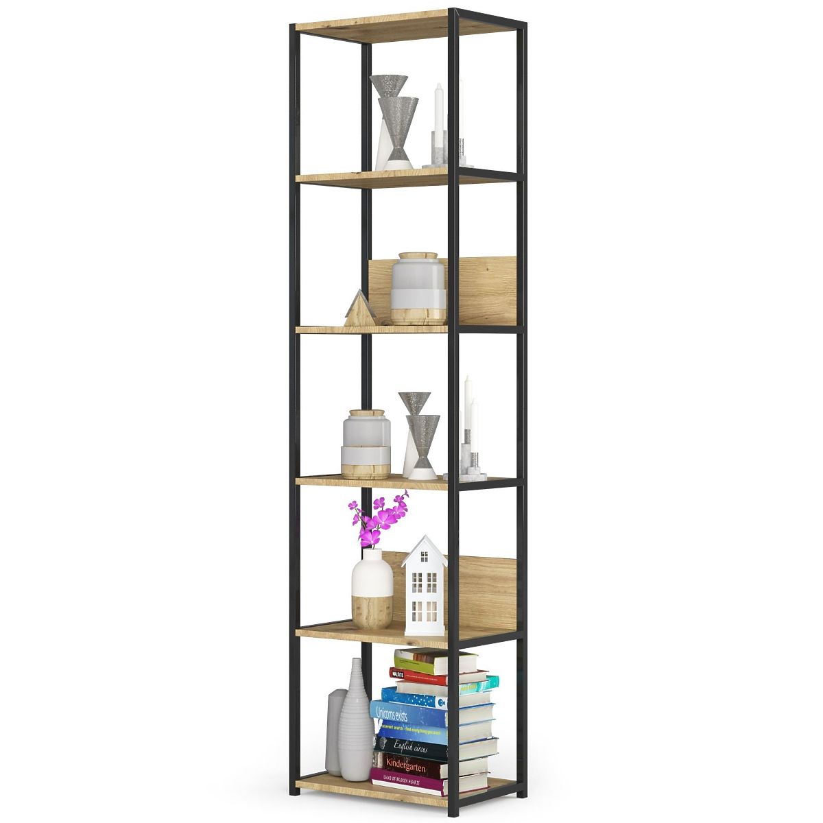 A fém loft polc praktikus és modern bútor, amely illik mind a nappaliba, mind az irodába. A polc fekete fém kerettel és 6 tölgy artisan színű polccal rendelkezik. A polcok 16 mm vastag laminált lapból készültek. Ez egy tartós és erős anyag, amely nagy kopásállósággal rendelkezik. Az élek további ABS éllel vannak védve, így a bútor még intenzív mindennapi használat mellett is jól néz ki. A polc 6 polccal van felszerelve, amelyeken elhelyezheti a kiállítani vagy kéznél tartani kívánt tárgyakat. Összességében nagyon stílusos és modern megjelenésű.