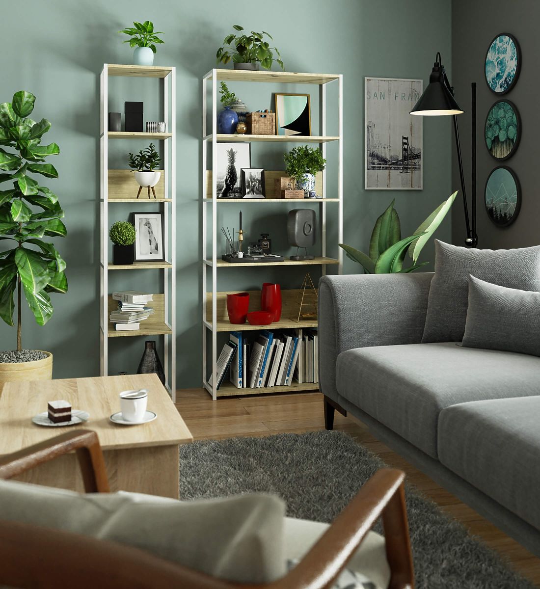 A fém loft polc praktikus és modern bútor, amely illik mind a nappaliba, mind az irodába. A polc fehér fém kerettel és 6 tölgy artisan színű polccal rendelkezik. A polcok 16 mm vastag laminált lapból készültek. Ez egy tartós és ellenálló anyag, amely nagy kopásállósággal rendelkezik. Az élek ABS éllel vannak védve, így a bútor még intenzív napi használat mellett is jól néz ki. A polc 6 polccal van felszerelve, amelyeken elhelyezheti a kiállítani vagy kéznél tartani kívánt tárgyakat. Összességében nagyon stílusos és modern megjelenésű.