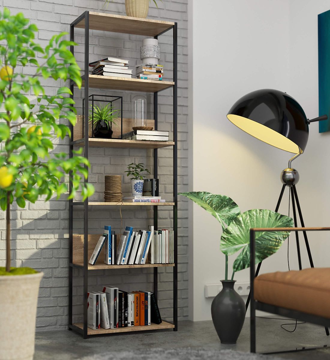 A fém loft polc praktikus és modern bútor, amely alkalmas mind a nappaliba, mind az irodába. A polc fekete fém vázzal és 6 sonoma tölgy színű polccal rendelkezik. A polcok 16 mm vastag laminált lapból készültek. Tartós és ellenálló anyag, amely nagy kopásállósággal rendelkezik. Az élek további ABS éllel vannak védve, így a bútor még intenzív mindennapi használat mellett is jól néz ki. A polc 6 polccal van felszerelve, amelyeken elhelyezhetjük a kiállítani vagy kéznél tartani kívánt tárgyakat. Összességében nagyon stílusos és modern megjelenésű.