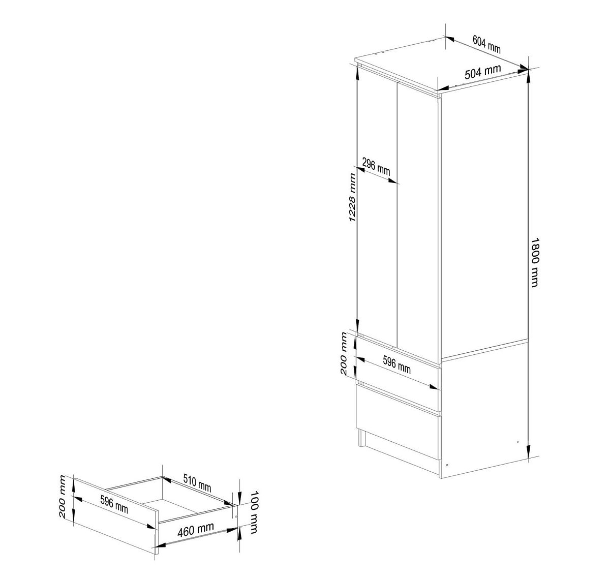 Fehér STAR ruhásszekrény 60 cm széles, 2 ajtóval és 2 fiókkal. .. többet