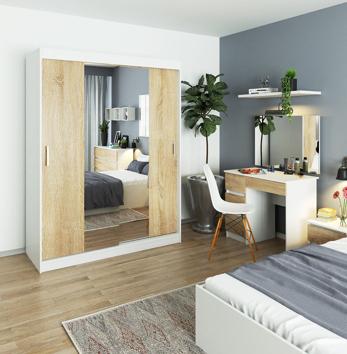 A 150 cm-es tolószekrény a CLP bútor rendszer része, amely lehetővé teszi egy teljes készlet létrehozását, amelyet több hálószoba berendezésére is használhatunk. Ezenkívül ügyeltek a termék esztétikus befejezésére ABS élzárás alkalmazásával.