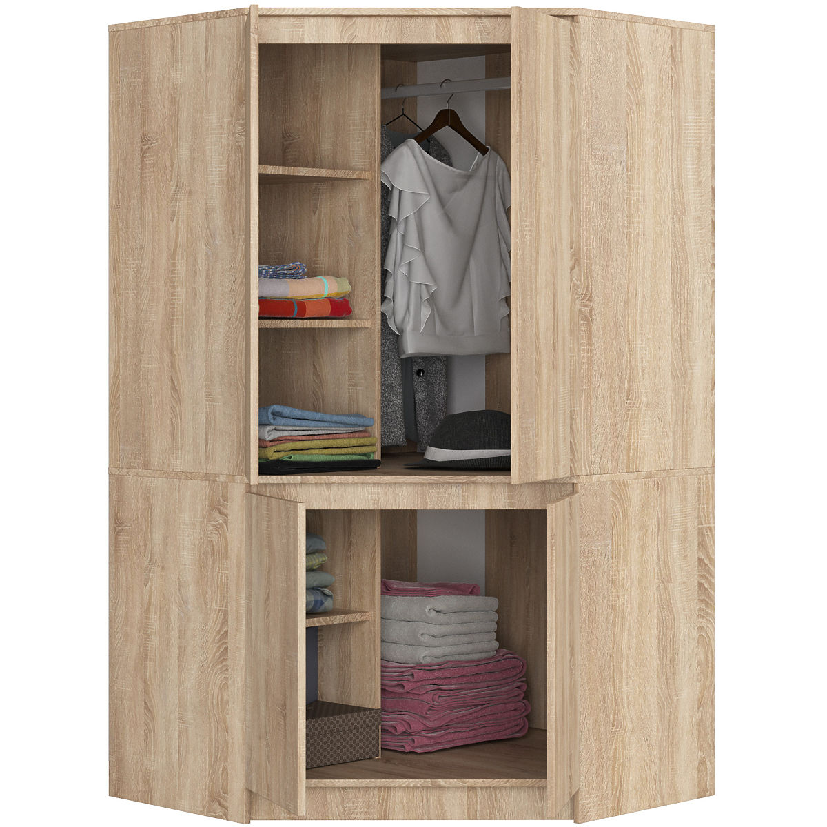 Négyrészes, sonoma tölgy színű sarokszekrény nagy tárolókapacitással. .. többet