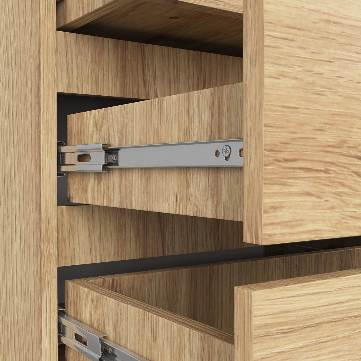 - A fiókok fém golyóscsapágyas síneken mozognak