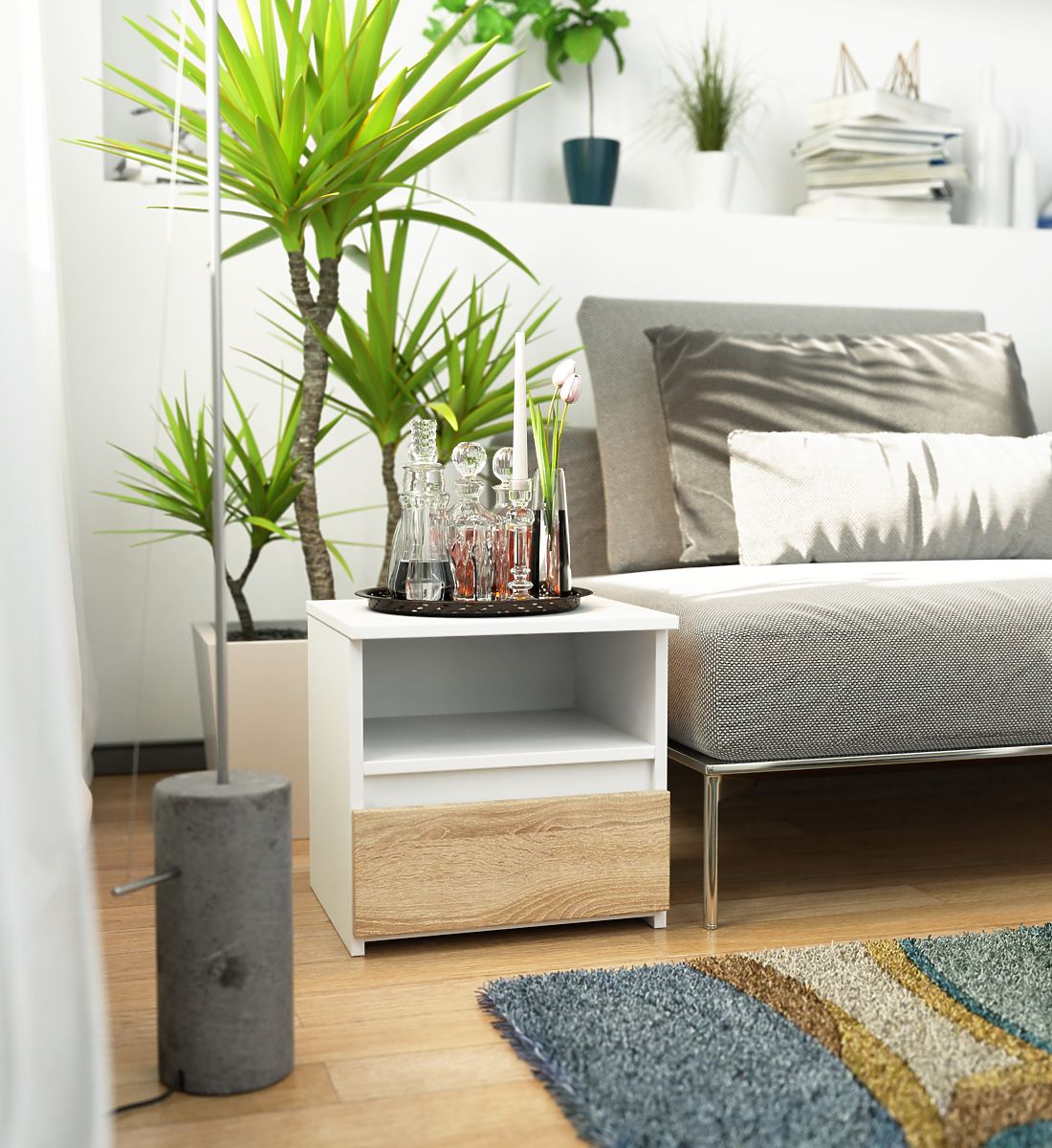 CL1 éjjeliszekrény fehér és sonoma tölgy színben. .. többet