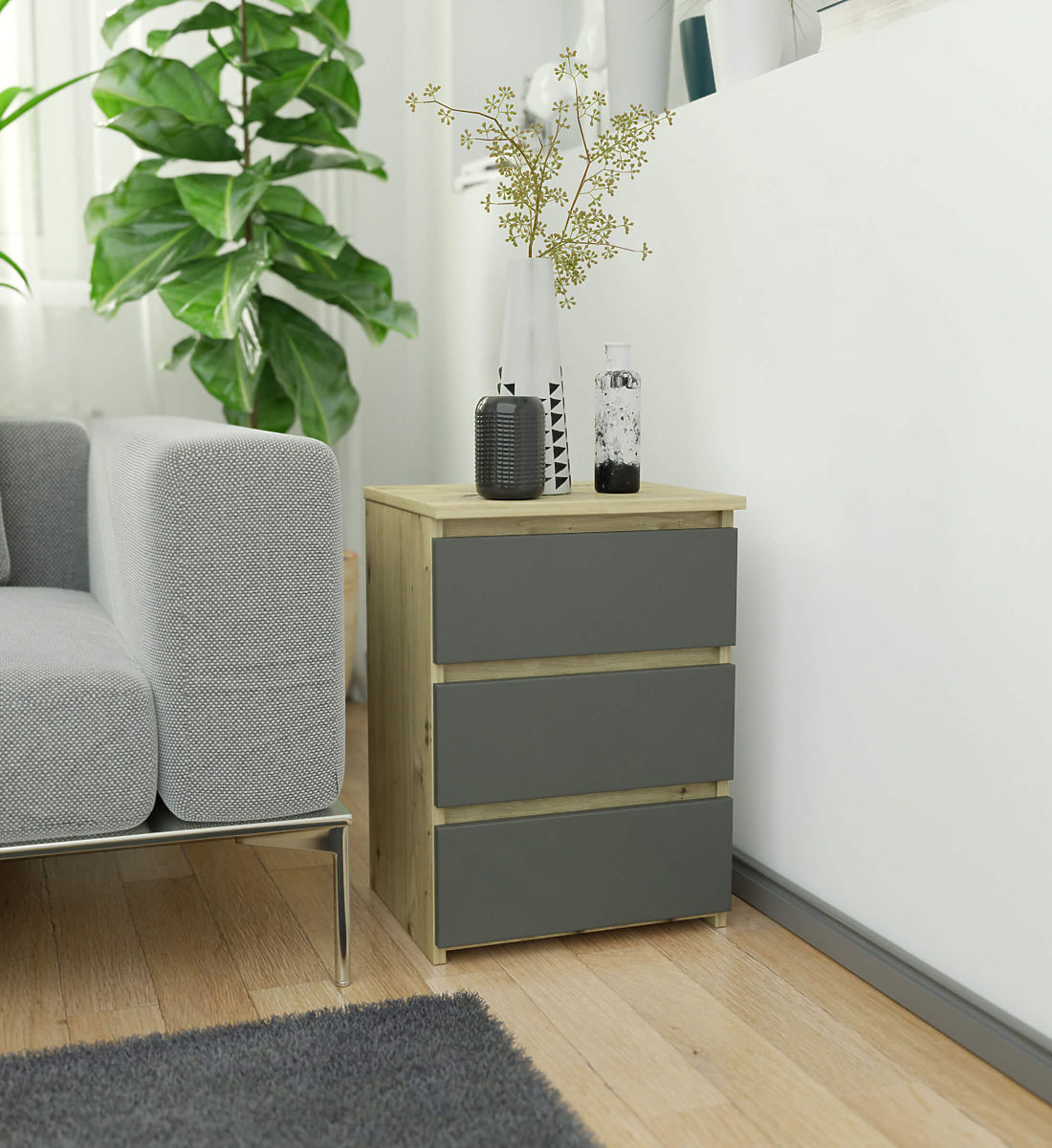 40 cm-es CL3 éjjeliszekrény artisan tölgy színben, szürke frontokkal. .. többet