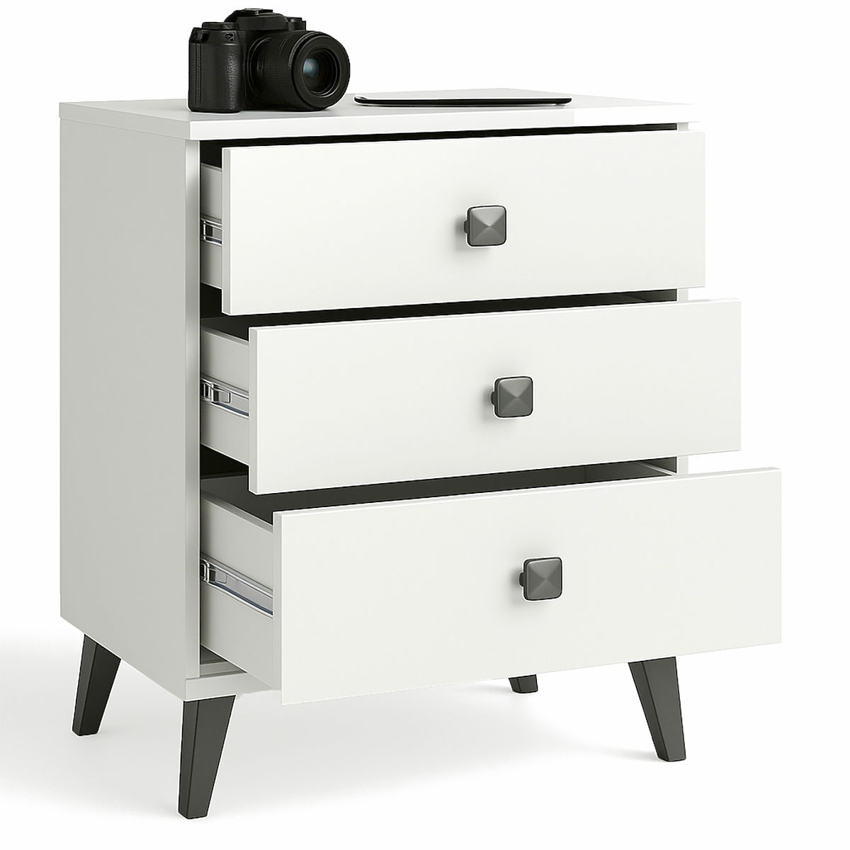 MOBI ÉJJELISZEKRÉNY 3 FIÓKOS FEHÉR FEKETE