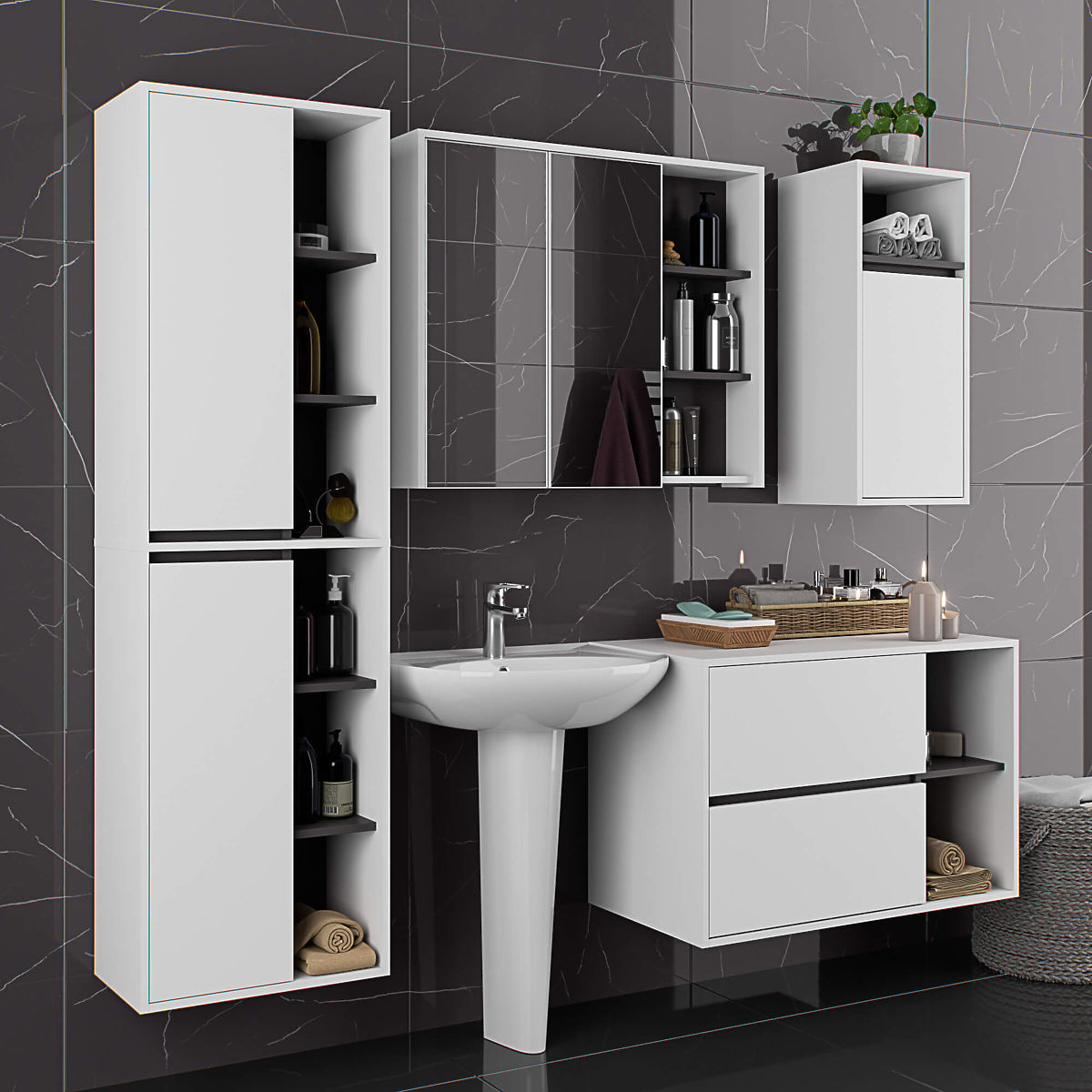 Lukahome.hu » Fürdőszoba és WC / Fürdőszobaszekrények / FÜRDŐSZOBAI FALI SZEKRÉNY VAMI W50 2D 6P FEHÉR / GRAFIT SZÜRKE