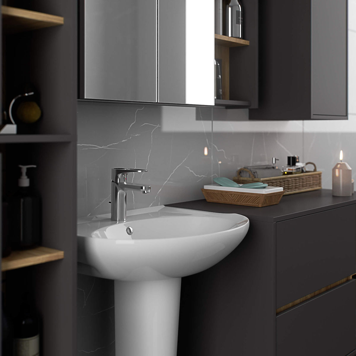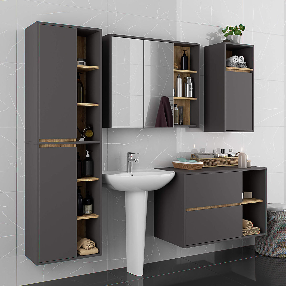 Lukahome.hu » Fürdőszoba és WC / Fürdőszobaszekrények / VAMI W50 2D 6P FÜGGŐ FÜRDŐSZOBAI SZEKRÉNY GRAFIT SZÜRKE / ARTISAN TÖLGY