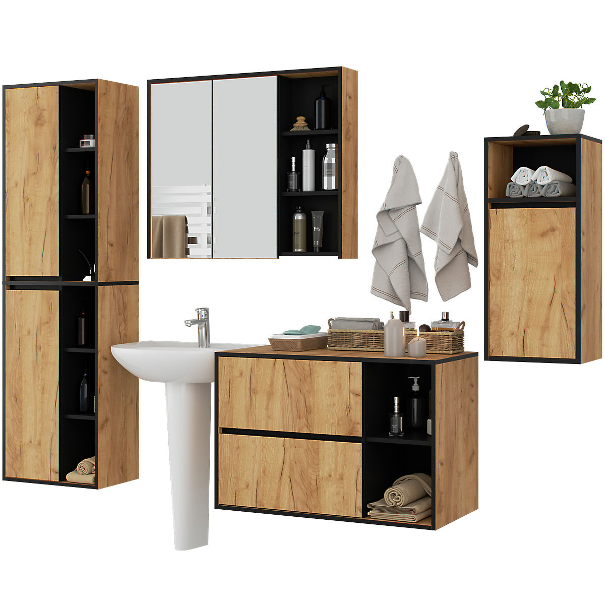 Lukahome.hu » Fürdőszoba és WC / Fürdőszobai szettek / VAMI FÜGGŐ FÜRDŐSZOBAI BÚTOR SZETT CRAFT TÖLGY / FEKETE