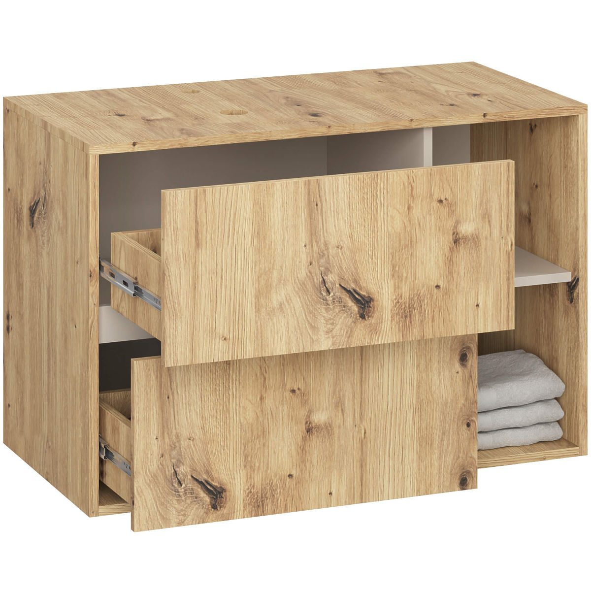 Lukahome.hu » Fürdőszoba és WC / Fürdőszobaszekrények / MOSDÓ ALATTI SZEKRÉNY NYÍLÁSOKKAL VAMI W90 UM 2SZ 2P ARTISAN TÖLGY / KASMÍR