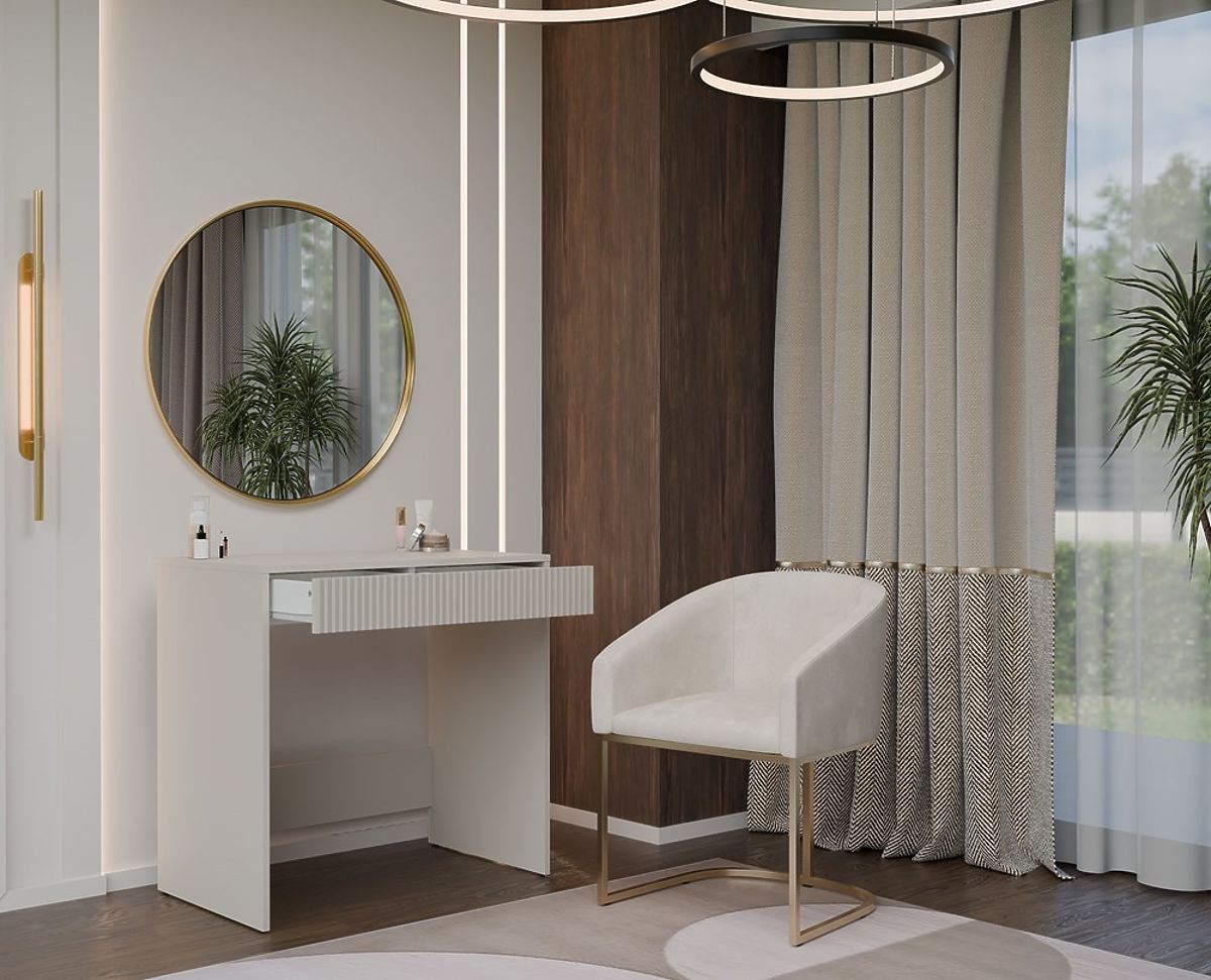 A kínálatban elérhető íróasztal tükörrel és LED világítással is (teljes sminkasztal).