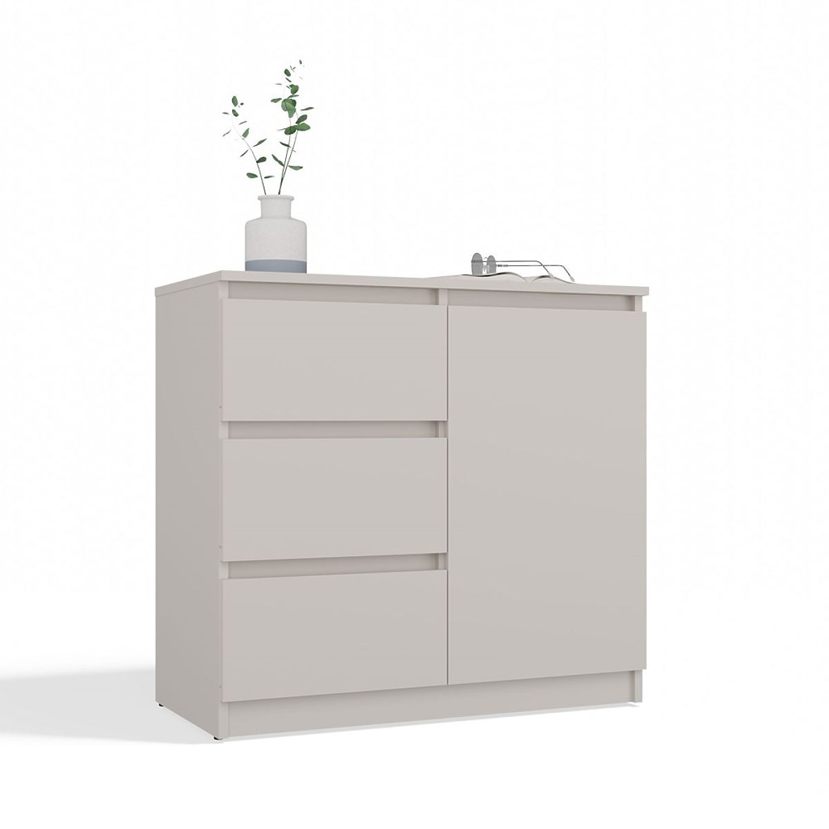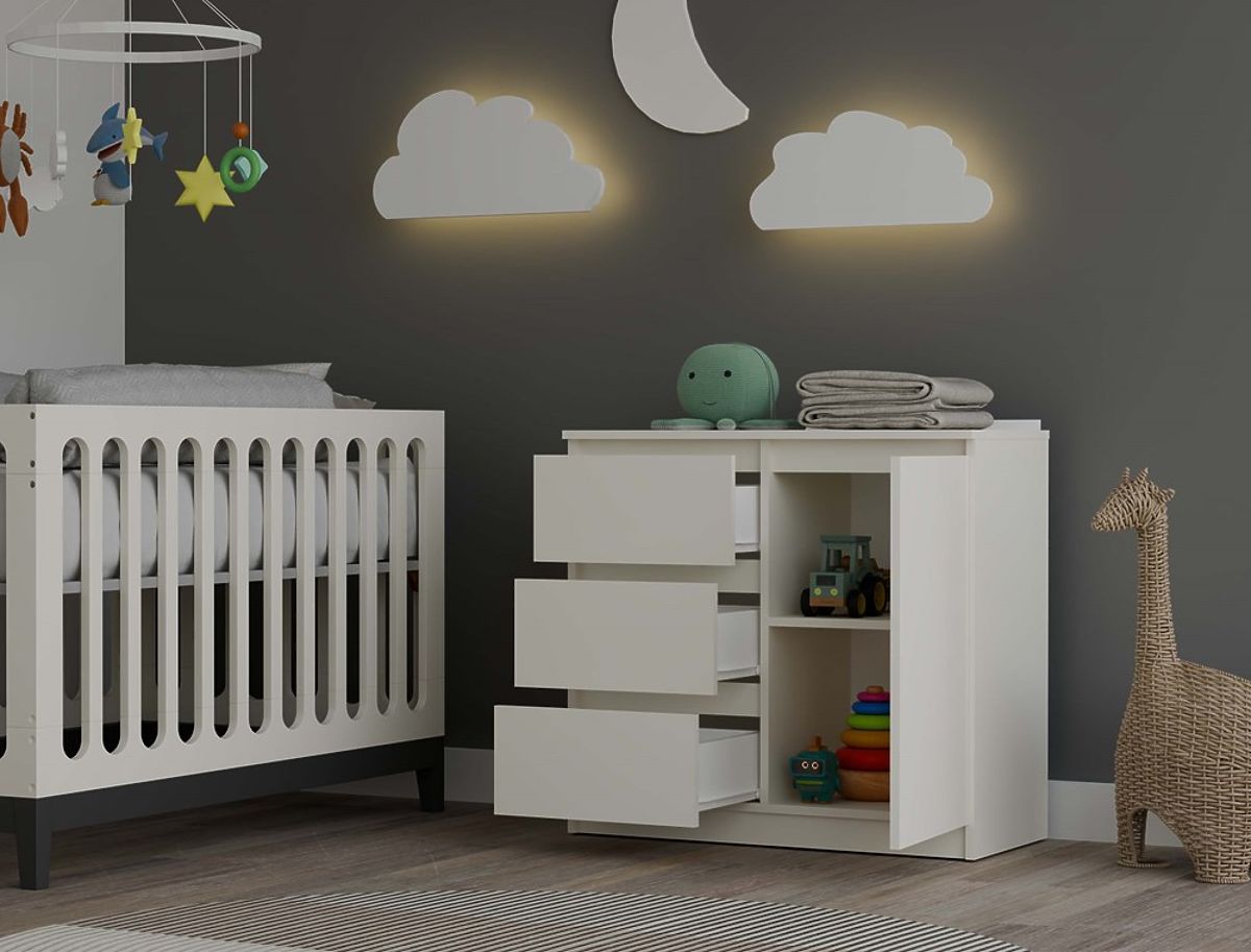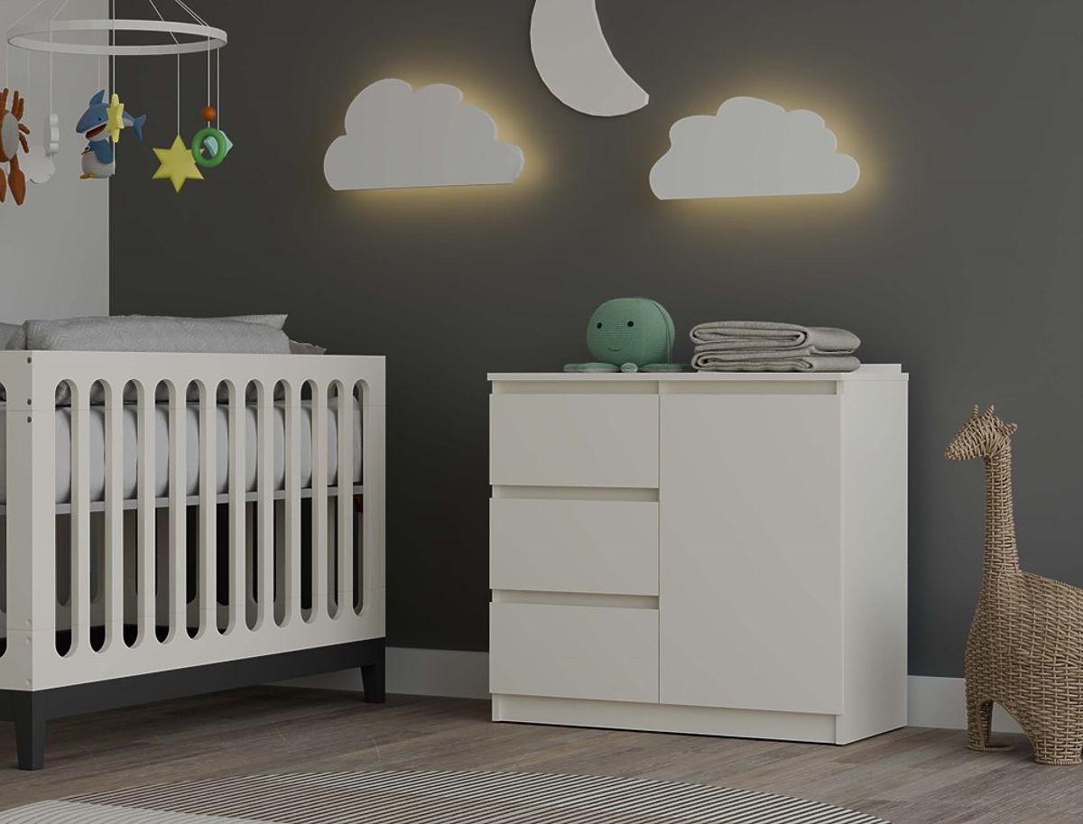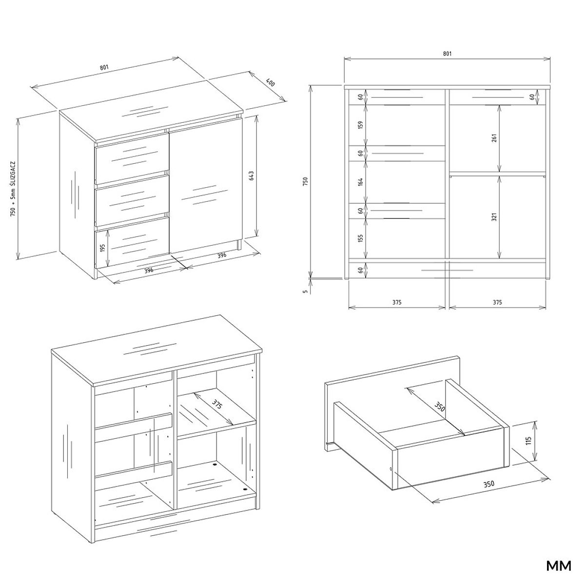 A 1D3S komód stílusos és praktikus bútor, amely kiválóan alkalmas hálószobába, nappaliba, előszobába vagy gyerekszobába. Az átgondolt elrendezés egy ajtóval és három tágas fiókkal kényelmes tárolást és térszervezést biztosít.