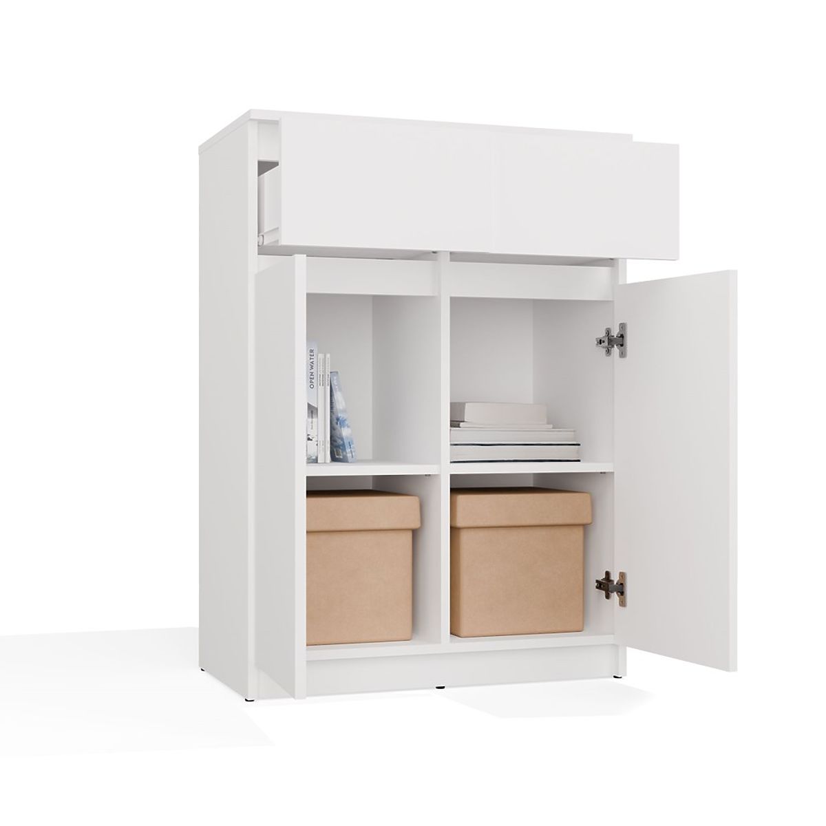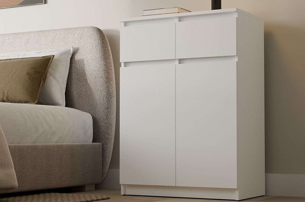 A 2DD2S komód fehér színben a funkcionalitás és a modern esztétika tökéletes kombinációja, ideális világos és tágas belső terekhez.