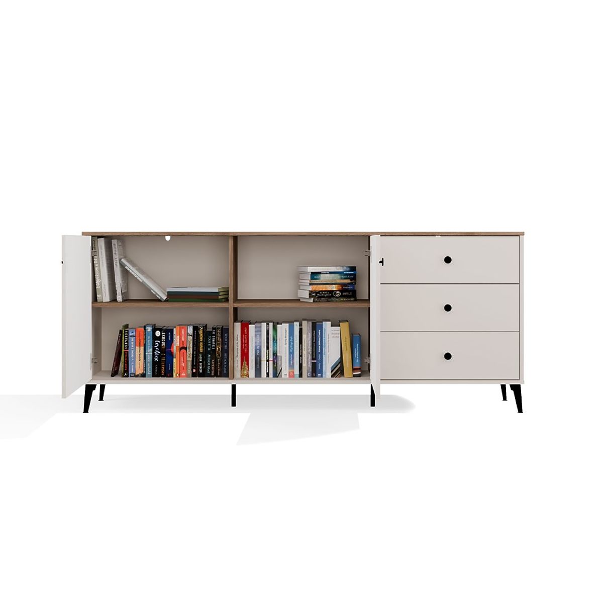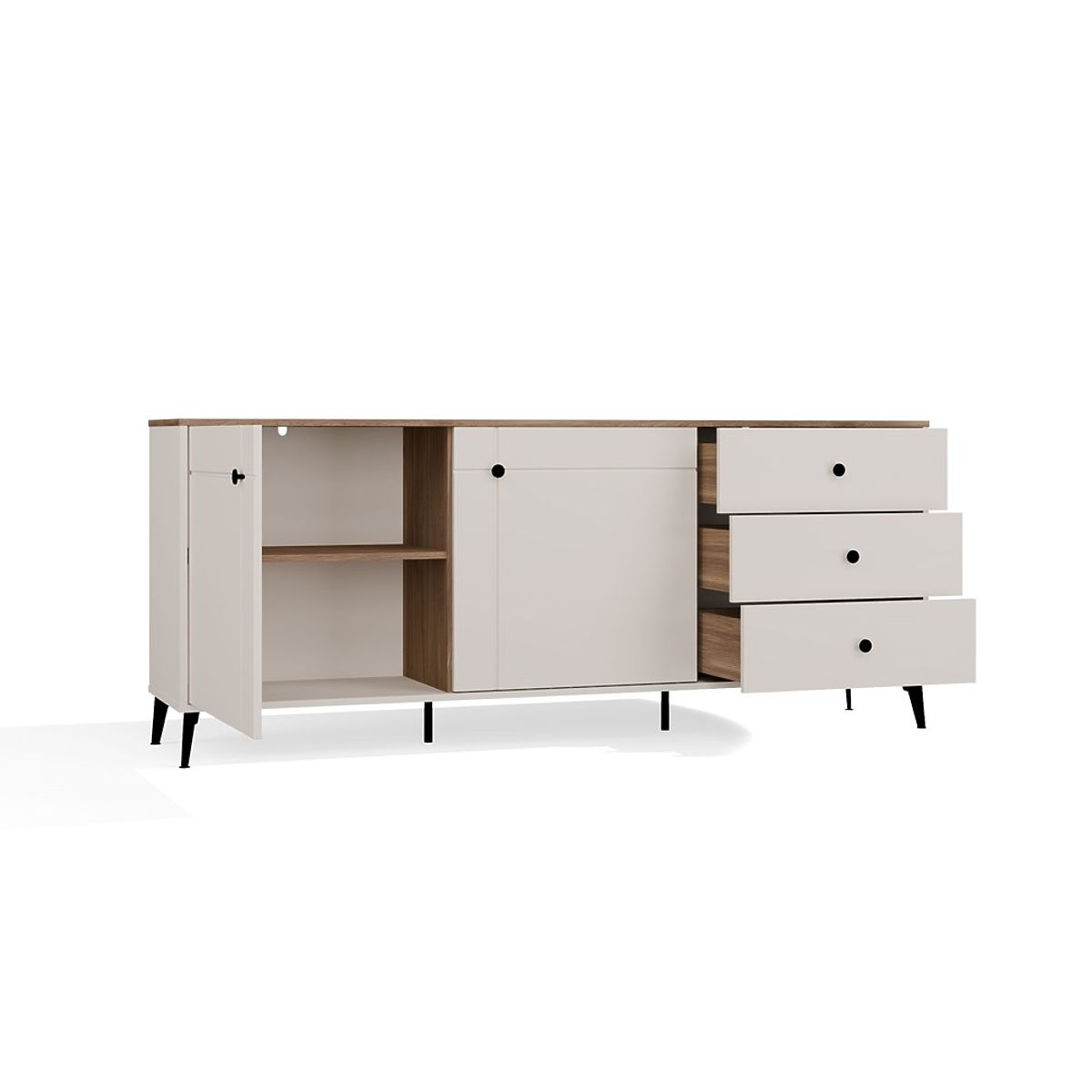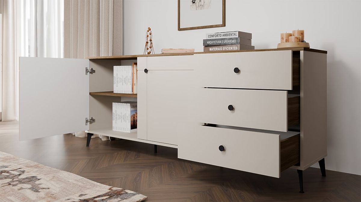 A 2 ajtós és 3 fiókos elrendezés elegendő tárolóhelyet biztosít – mindennapi szükségletekhez és olyan dolgokhoz, amelyeket szem elől szeretnénk tartani.