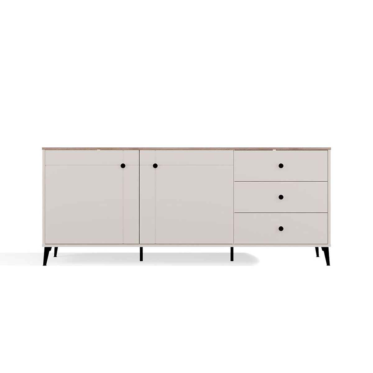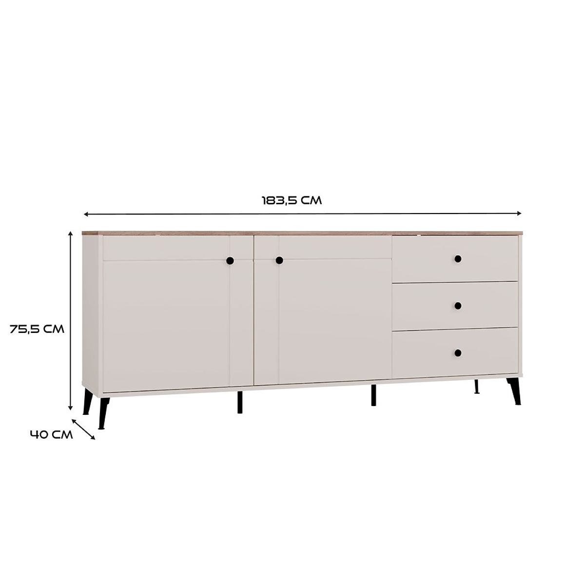 A POINT 2D3S komód a modern Point kollekcióból ötvözi az eleganciát a funkcionalitással. Divatos kašmír színben, kontrasztos Castello Tölgy dekorációval, tökéletesen illeszkedik a modern, skandináv és klasszikus belső terekbe.