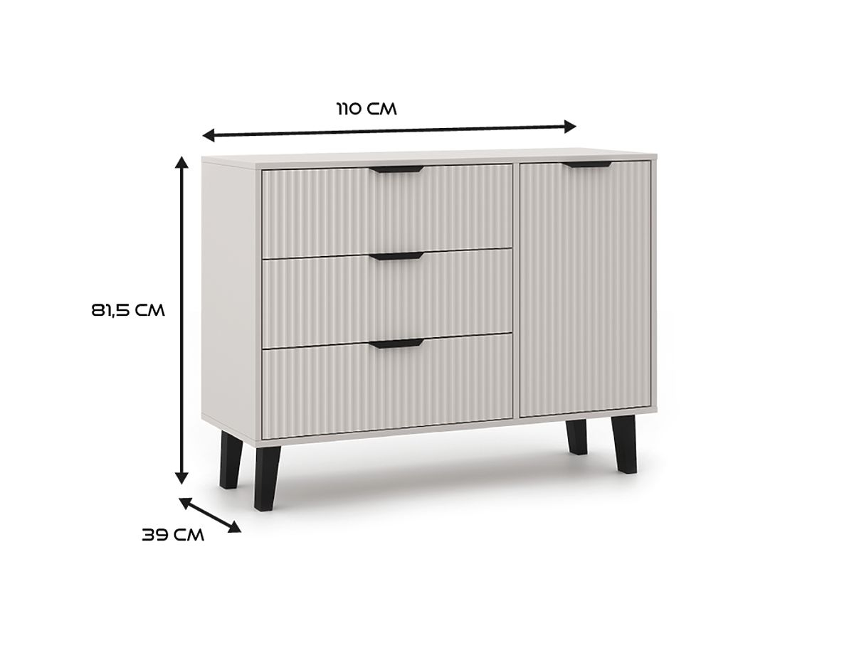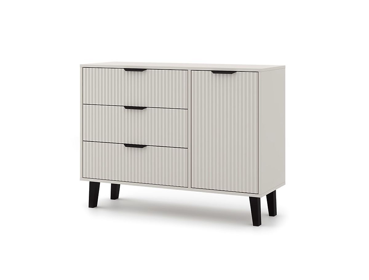 A SCANDI 1D3S SLIM komód a divatos design és a funkcionalitás kombinációja, ideális skandináv és modern stílusú belső terekhez. Kompakt méretei és esztétikus kivitelezése miatt alkalmas nappaliba, hálószobába és előszobába is.