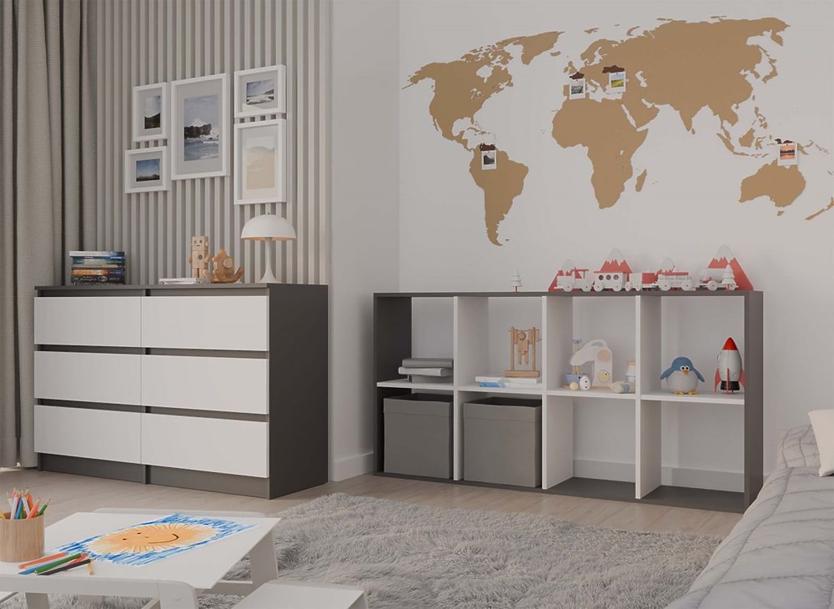 Modern polc 8 polccal, antracit és fehér színben. .. többet