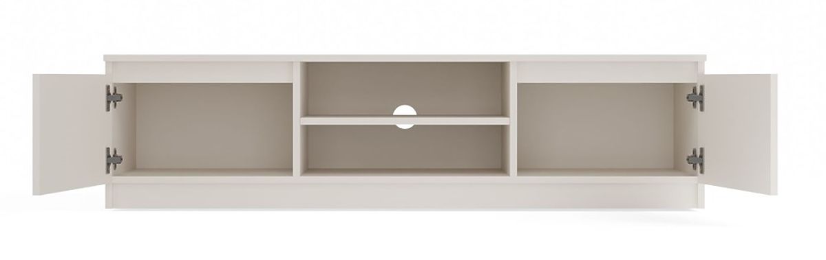Nyitott polc kényelmes elhelyezést biztosít az RTV eszközöknek, és a hátsó nyílás megkönnyíti a kábelek diszkrét elvezetését.