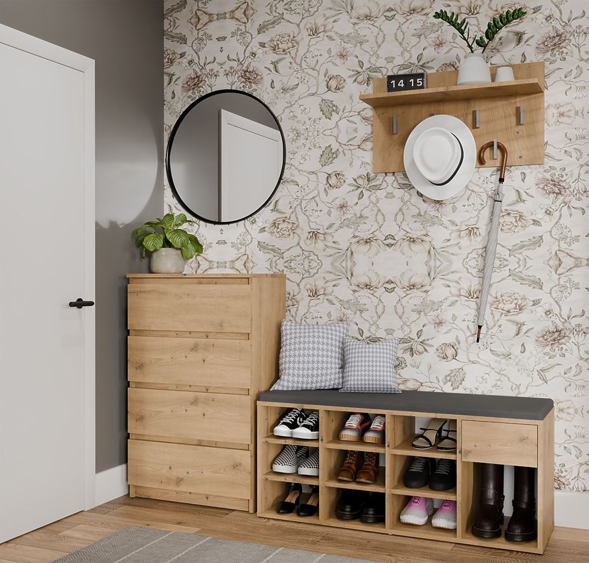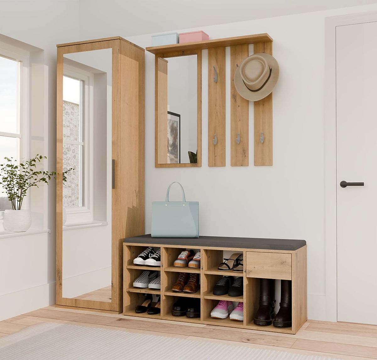 Nyitott cipősszekrény ülőkével és fiókkal előszobába. .. többet