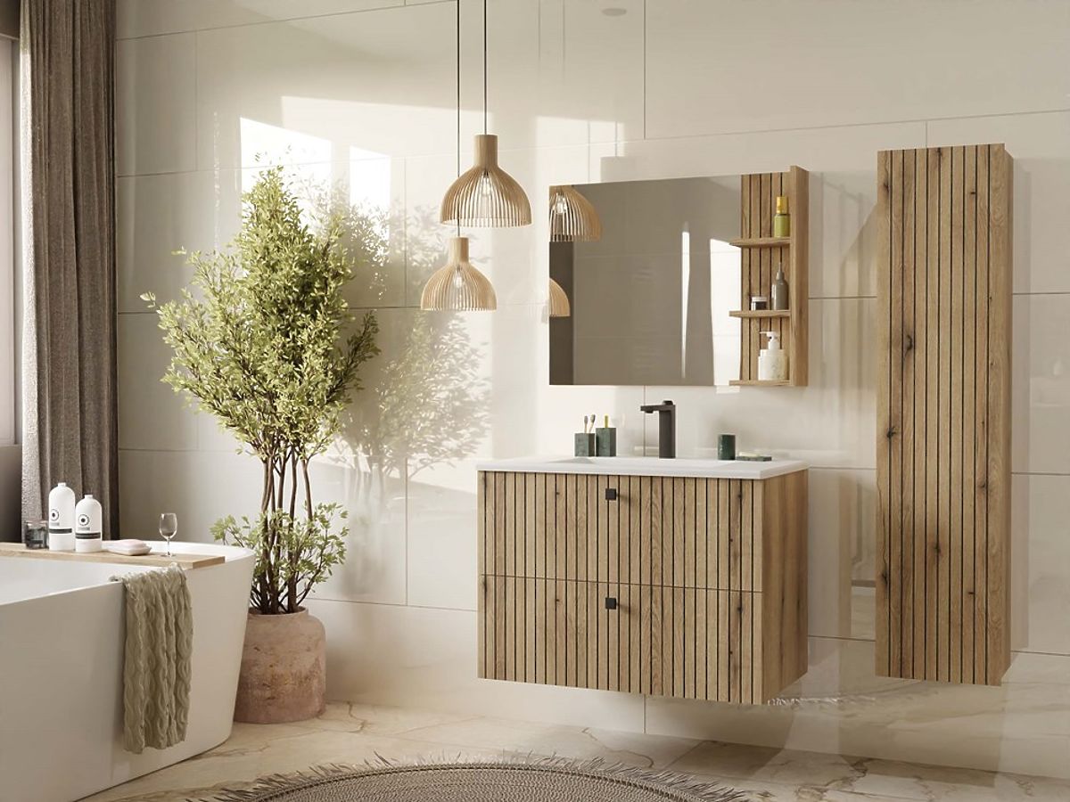 TIGO 80 2S FÜRDŐSZOBAI MOSDÓSZEKRÉNY EVOKE TÖLGY BARÁZDAZOTT ELŐLAPPAL + MOSDÓVAL