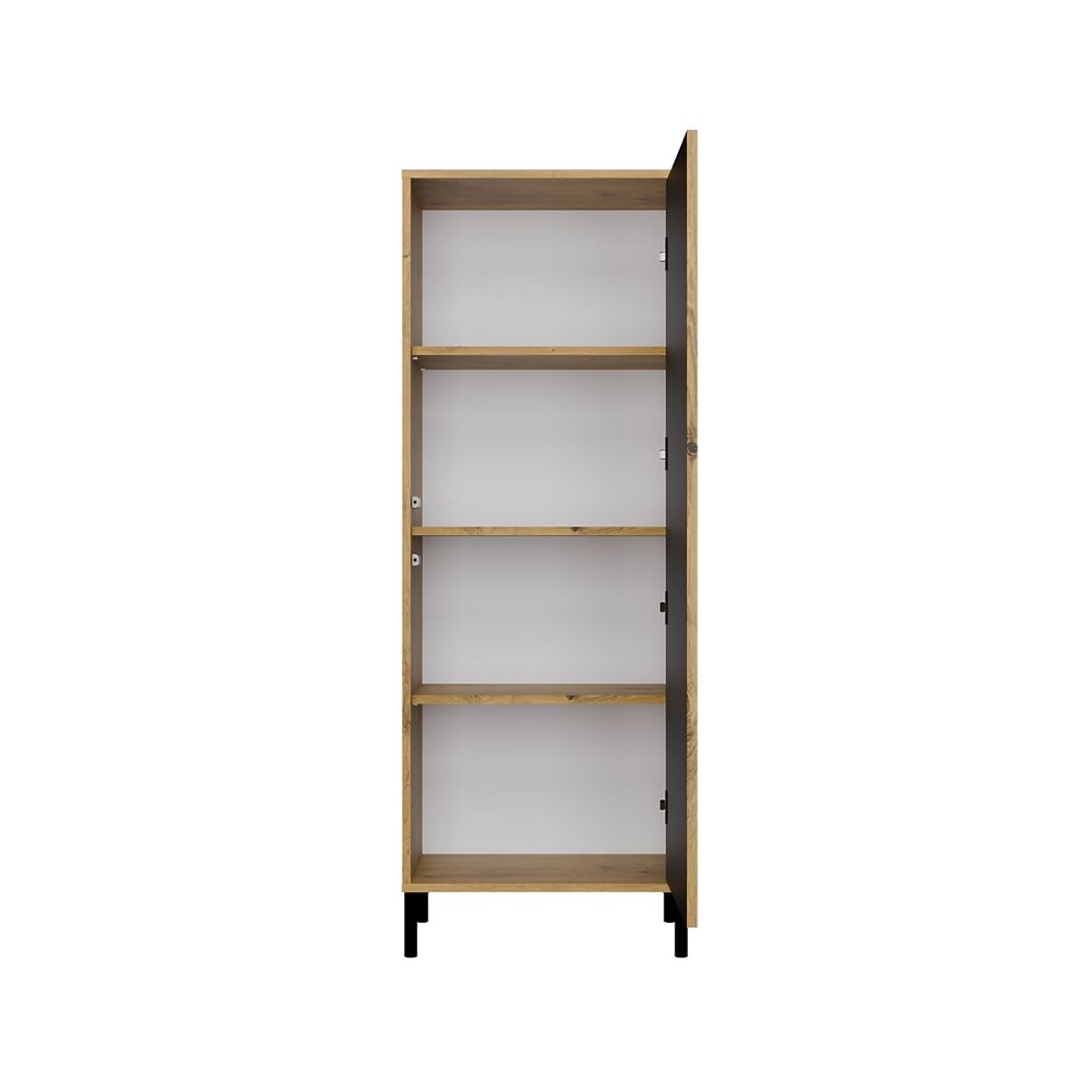 SZÍN:A KAMARO 1DD SLIM ARTISAN vitrin kiváló választás nappaliba, vendégszobába vagy irodába. A lamellás előlap és a TIP-ON rendszer modern karaktert kölcsönöz neki, és kompakt méretei megkönnyítik a kisebb terekhez való alkalmazkodást. Ideális könyvek, dekorációk vagy asztali edények számára — stílust és rendet ad a belső térnek.