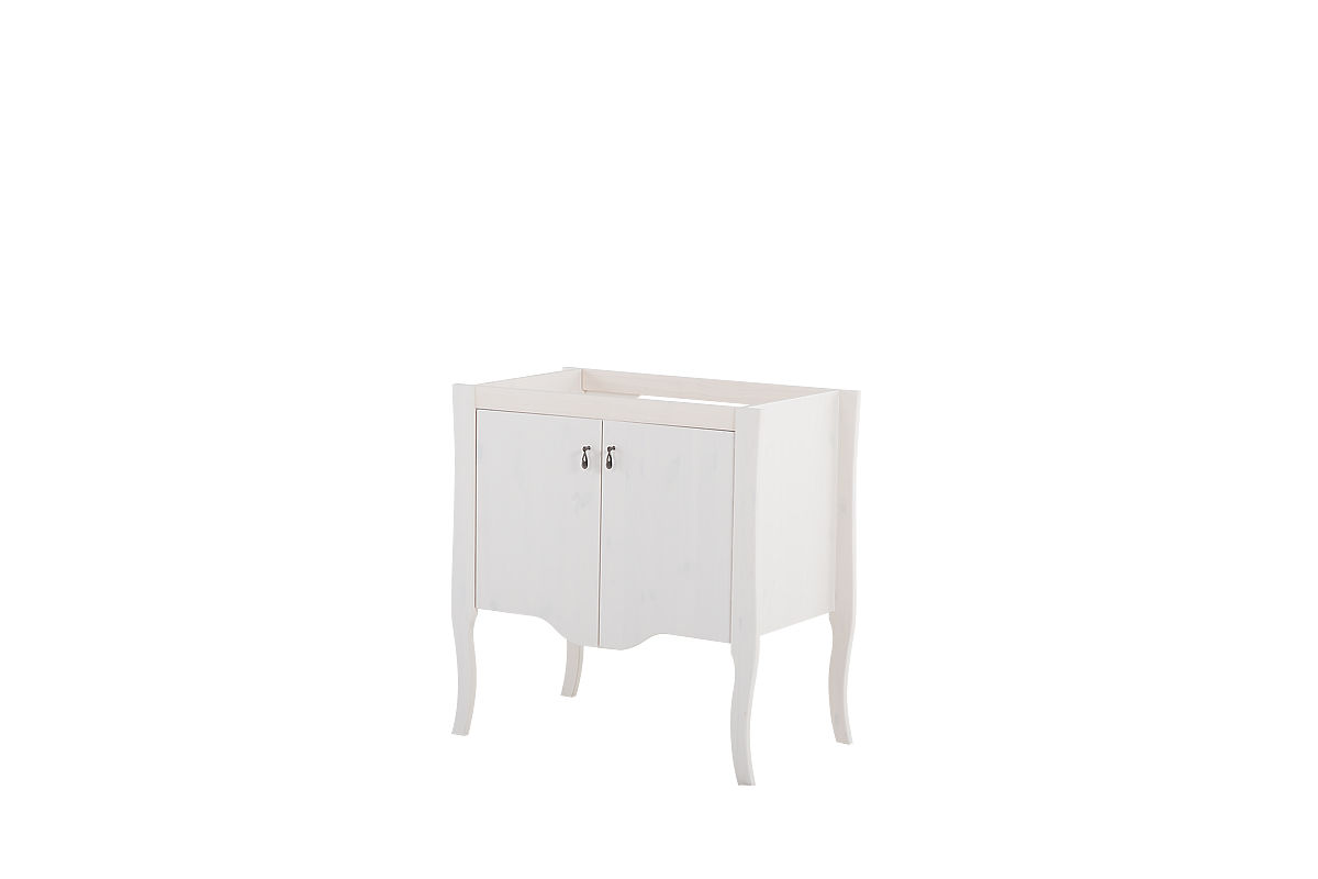 Fehér, fenyőfa mosdó alatti szekrény, 80 cm széles, 2 ajtóval. .. többet